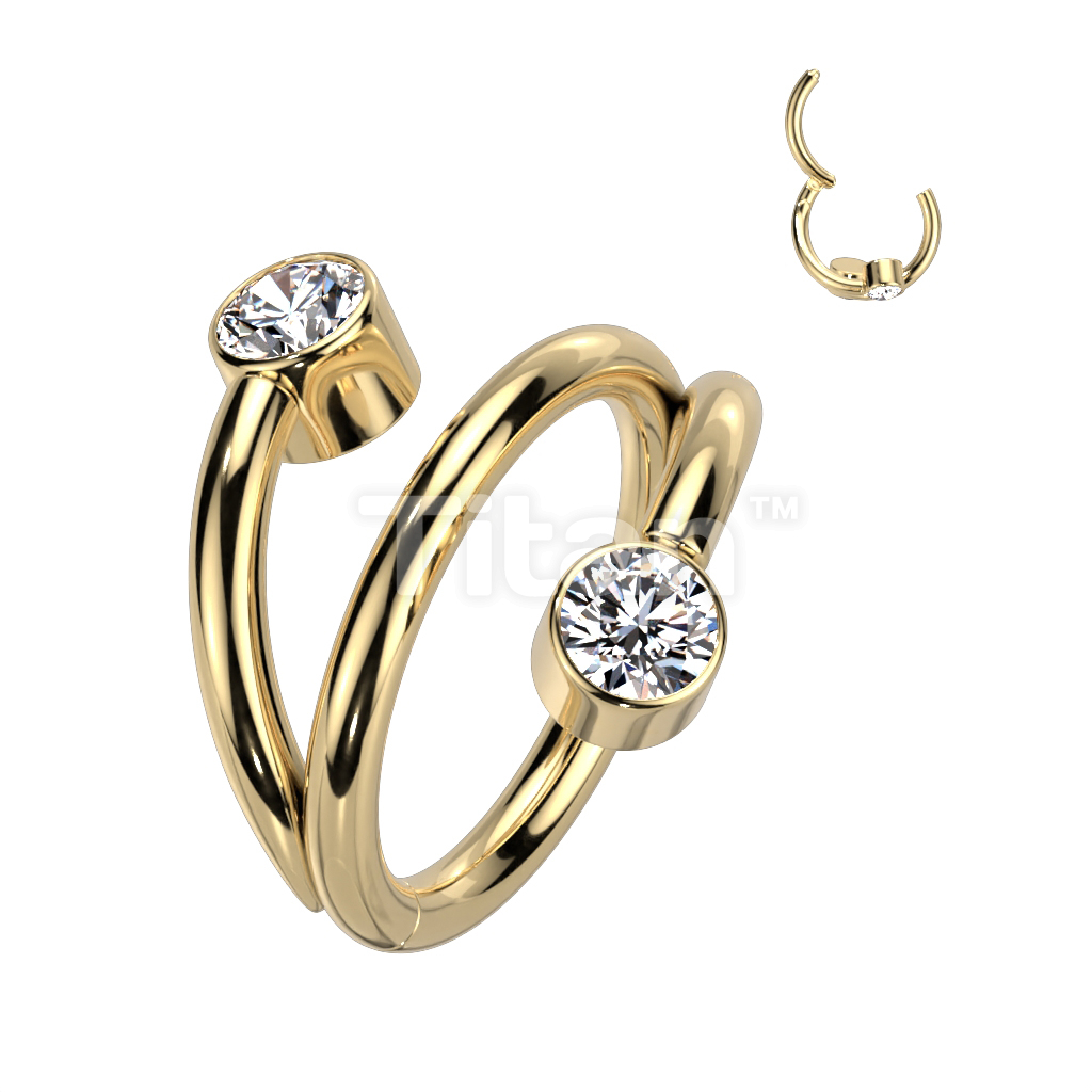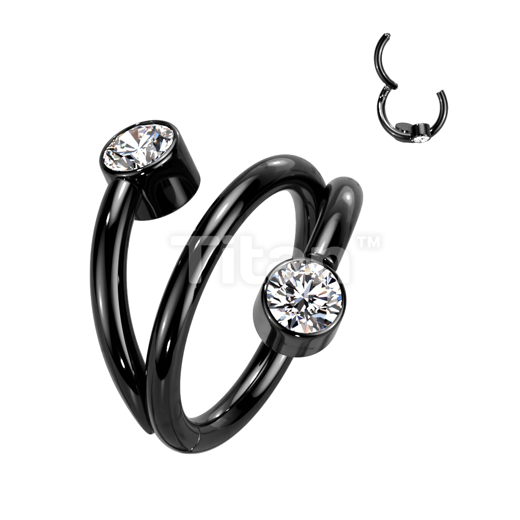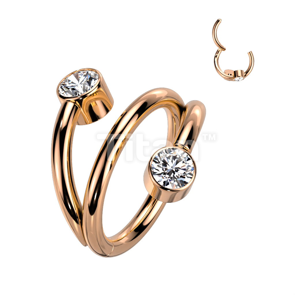 Implant Grade Titanium Hinged Segment Hoop Ring With Double Line and Round CZ Ends
