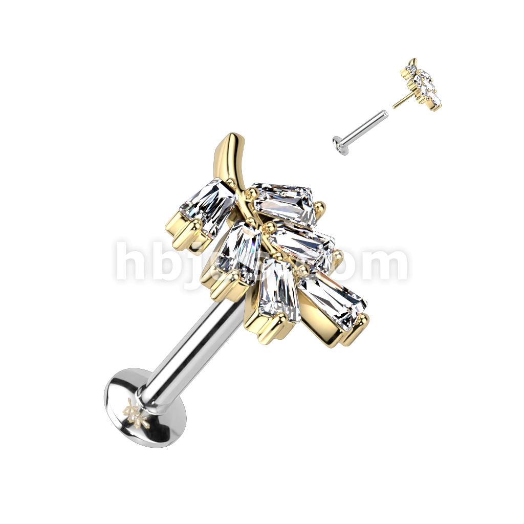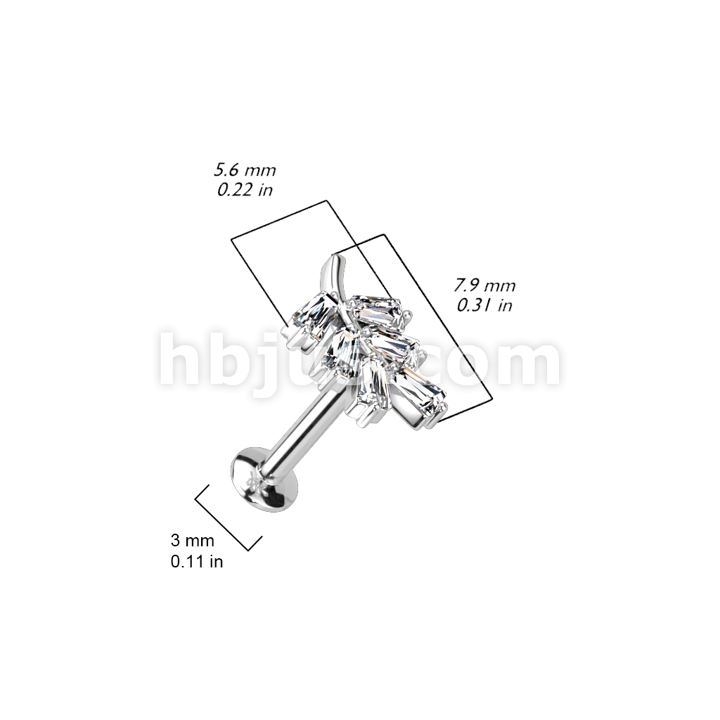 CZ Leaf Threadless Push In Top 316L Surgical Steel Labret, Convex Back Stud