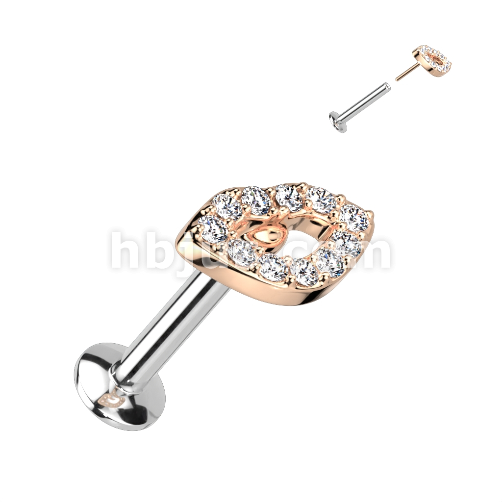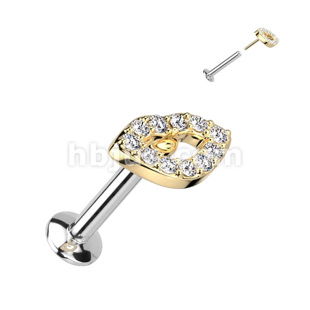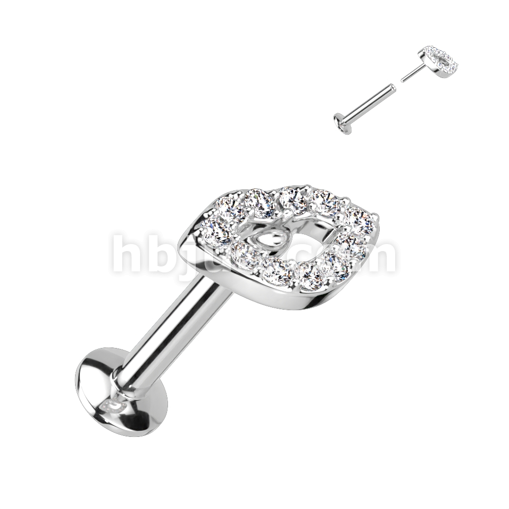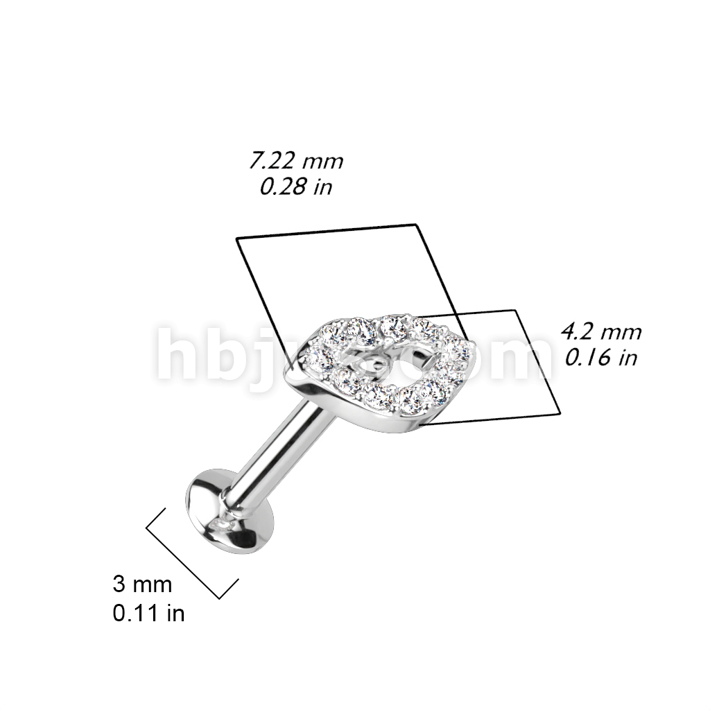CZ Pave Lip Threadless Push In Top 316L Surgical Steel Labret, Convex Back Stud