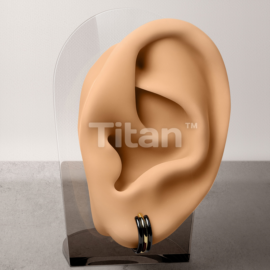 Implant Grade Titanium Hinged Segment Hoop Ring With Triple Stacked Dual Tone Hoops
