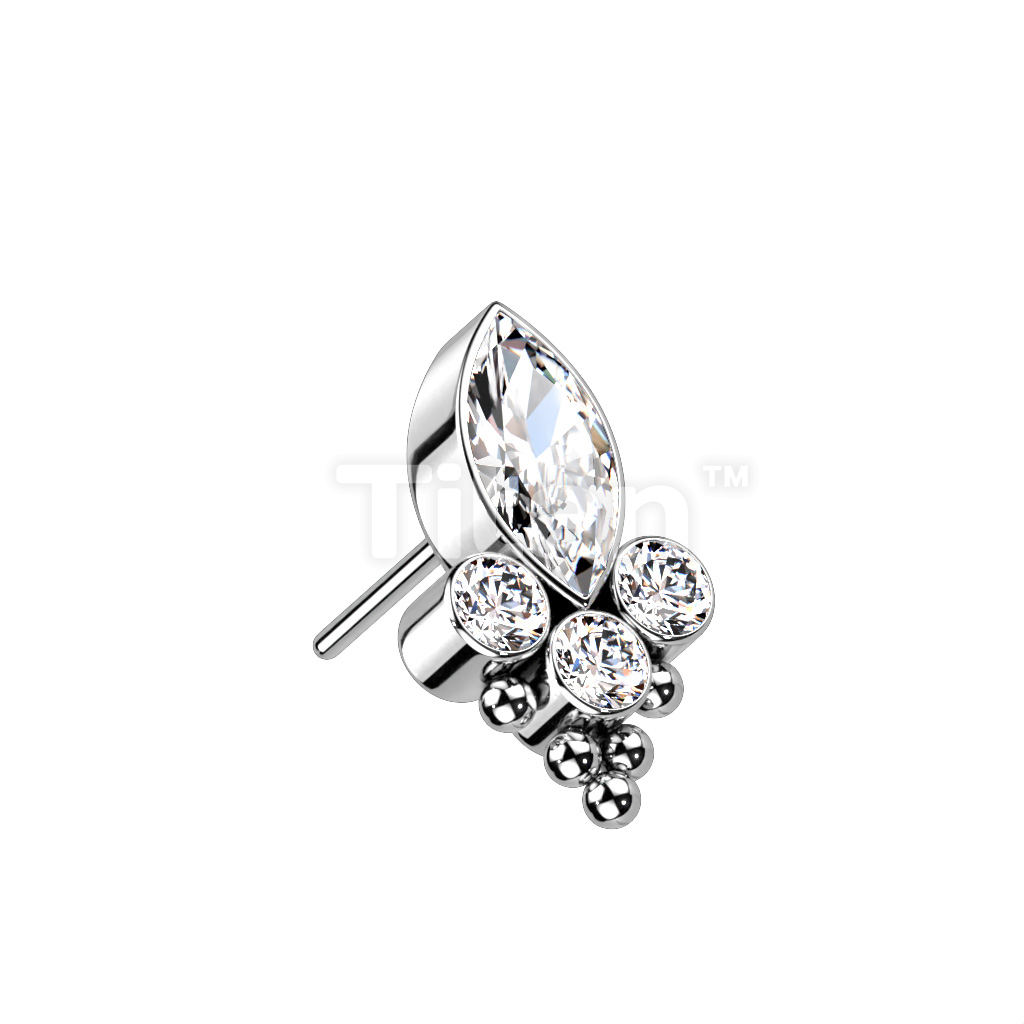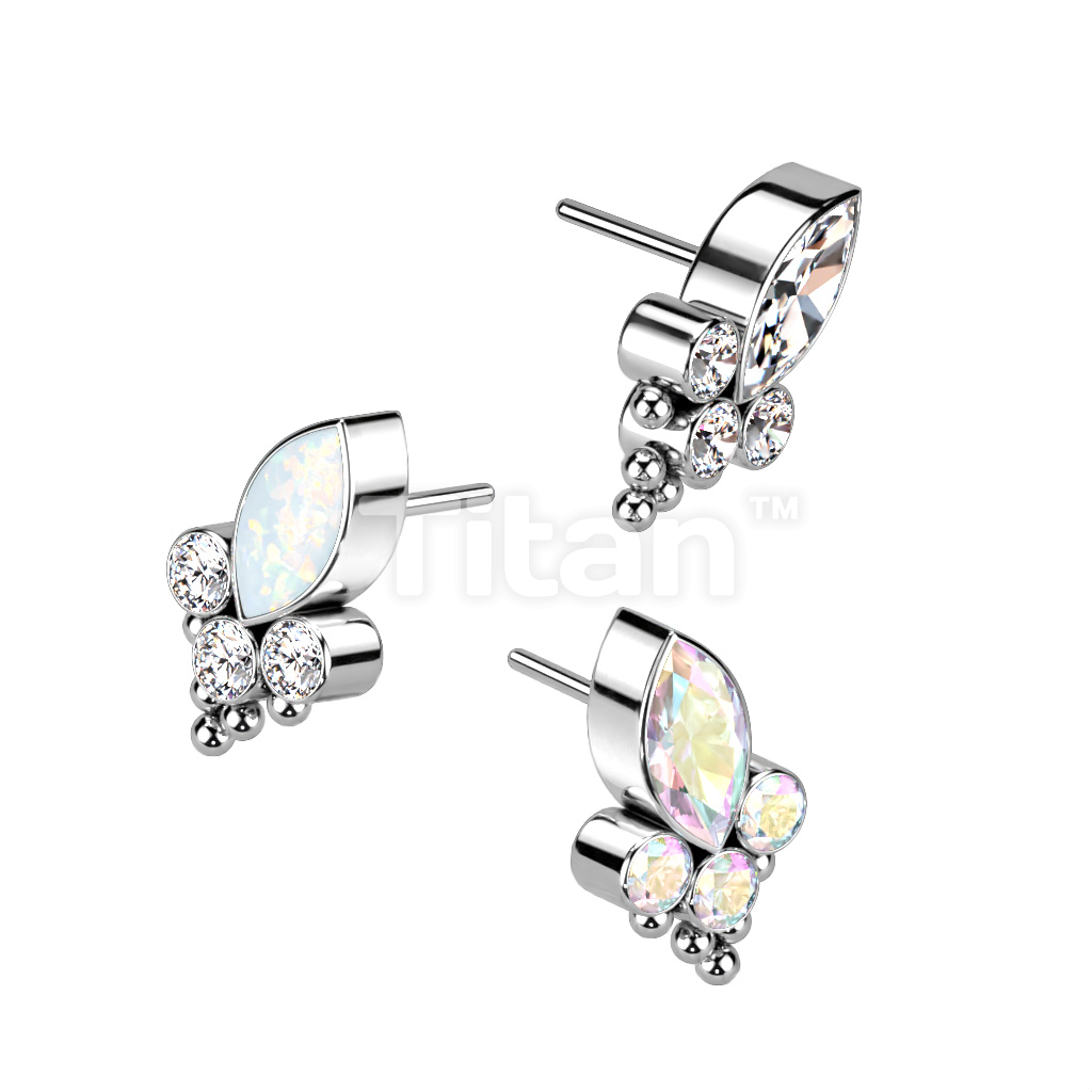 Implant Grade Titanium Threadless Push In Top With Marquise CZ or Opal and Round CZ and Balls