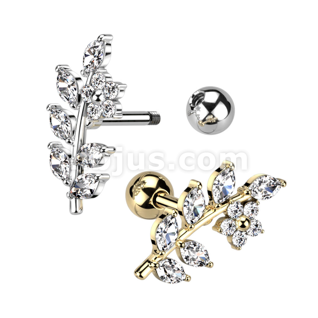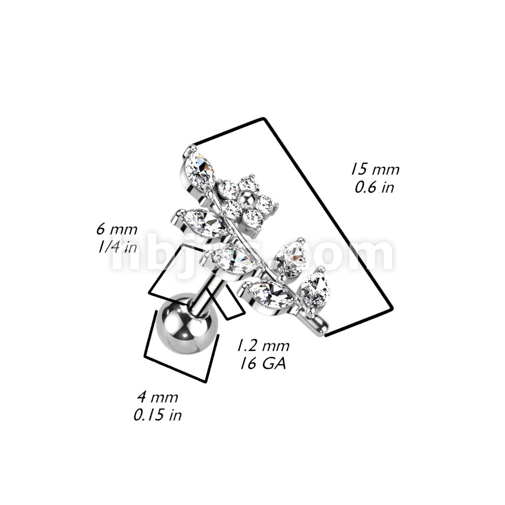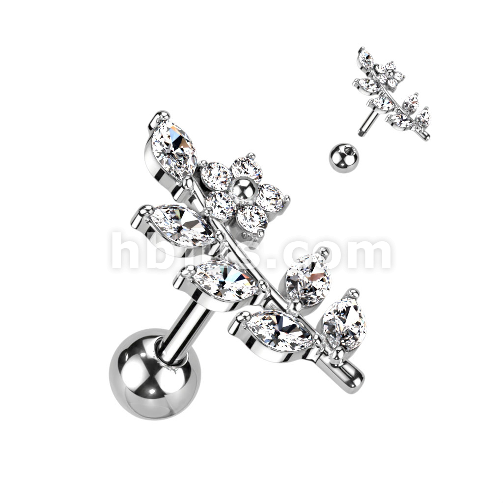 CZ Flower and Vine Top 316L Surgical Steel Cartilage Barbells