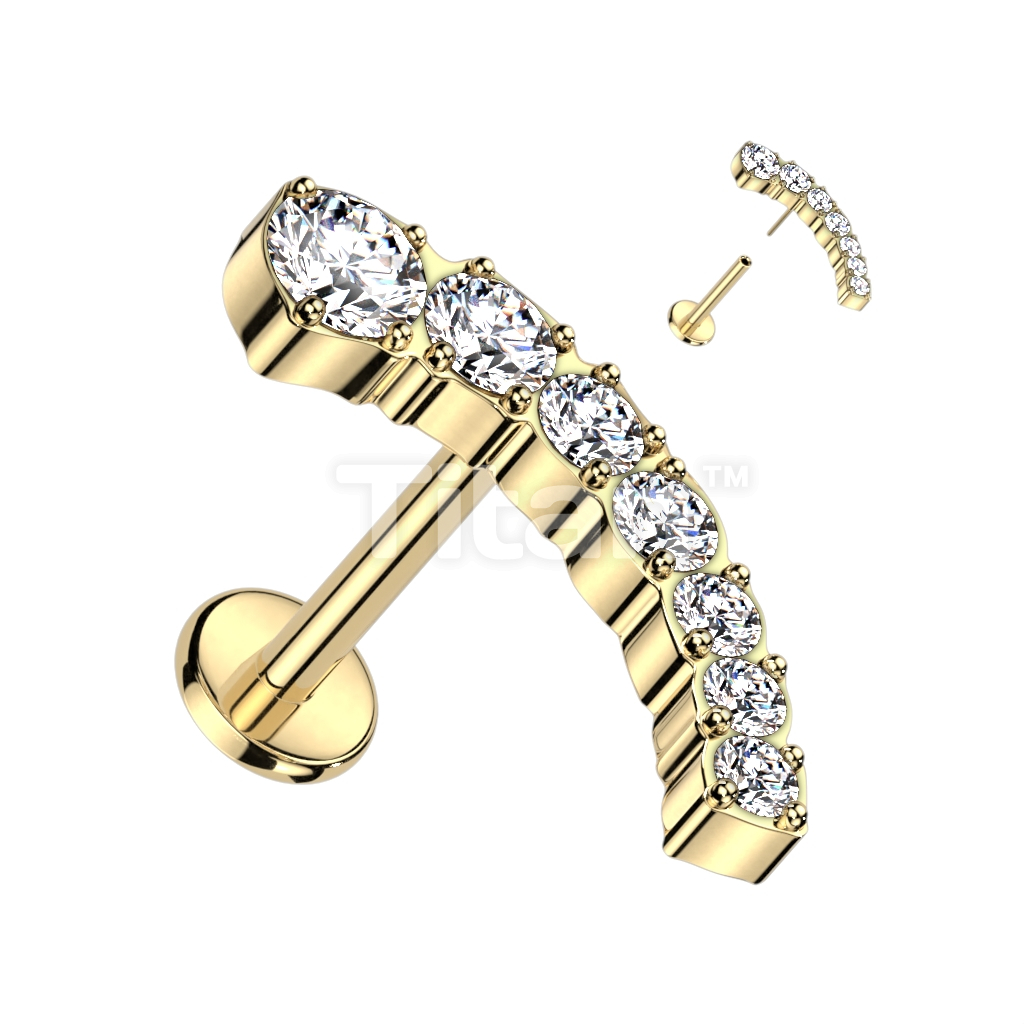 Implant Grade Titanium Threadless Push In Labret With Descending 7 CZ Curved Prong Set Top