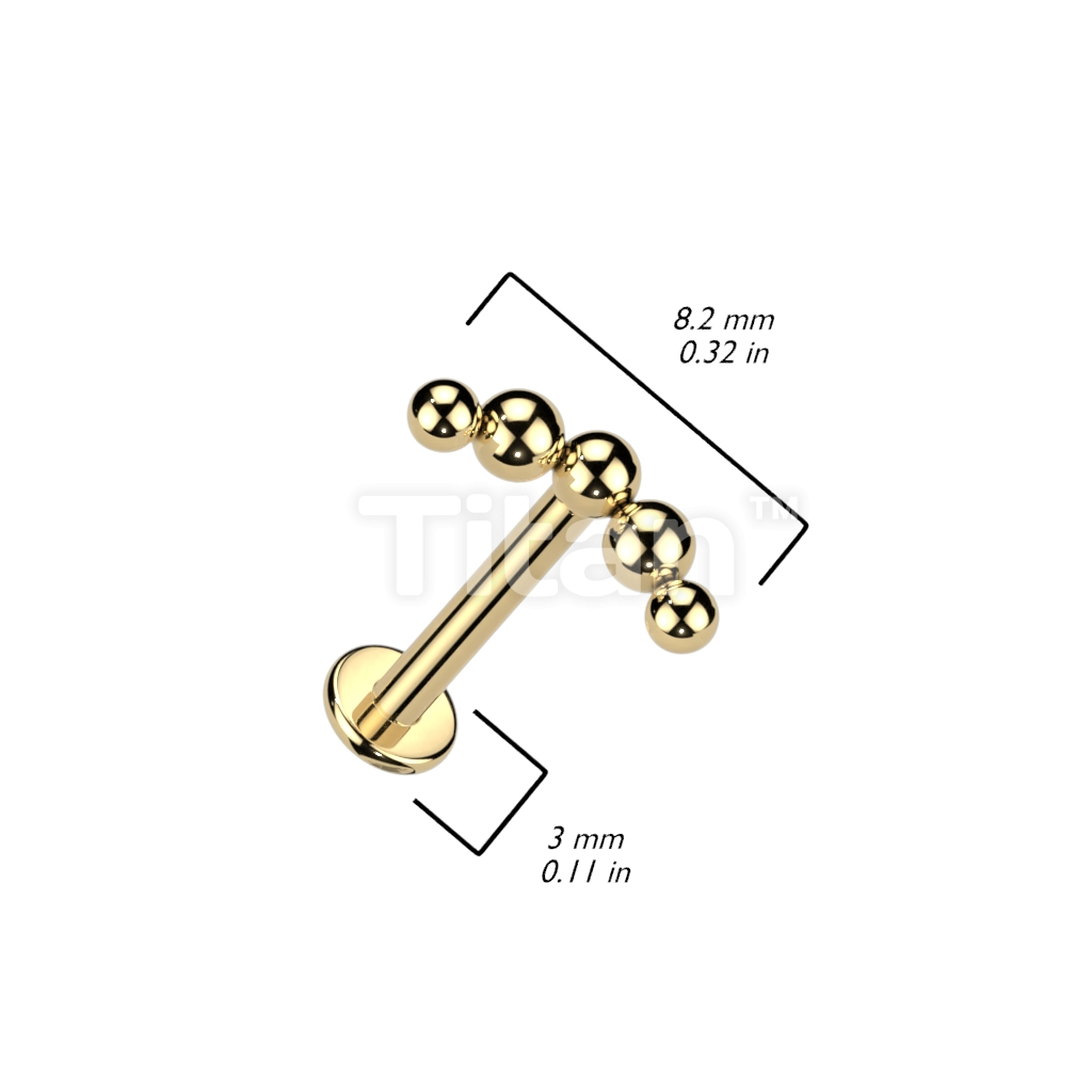 Implant Grade Titanium Internally Threaded Labret With Curved 5 Beaded Ball Top