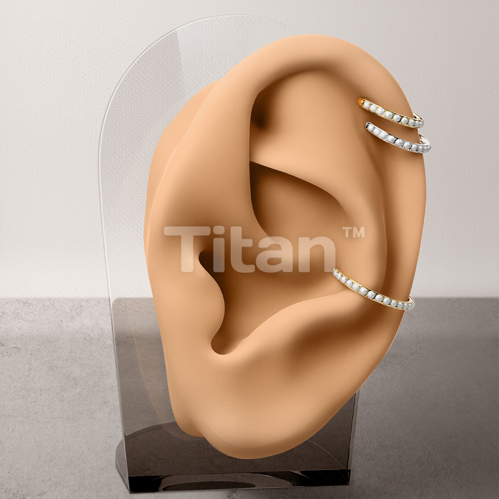 Implant Grade Titanium Hinged Segment Hoop Ring Lined With Outward Facing Pave Pearls