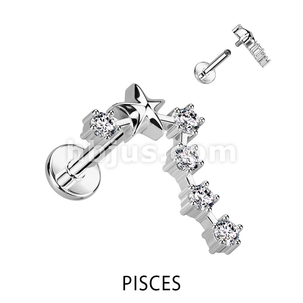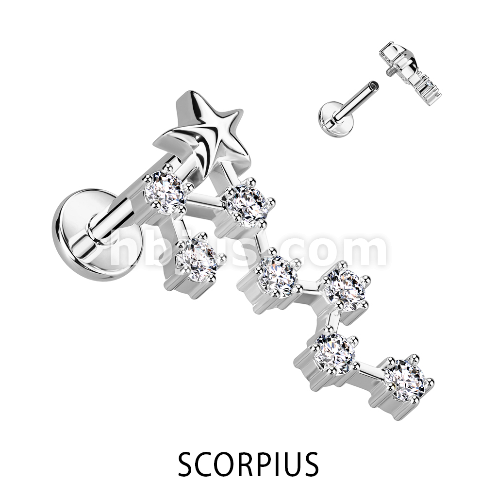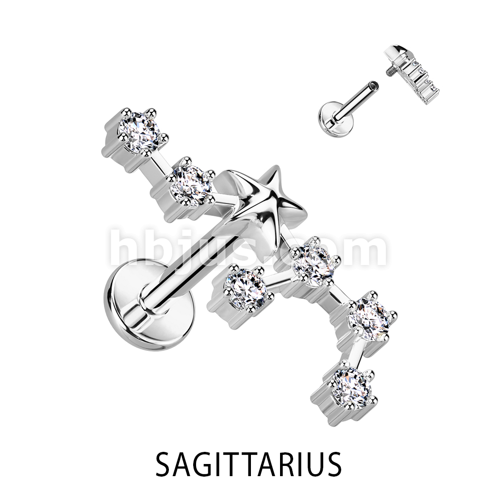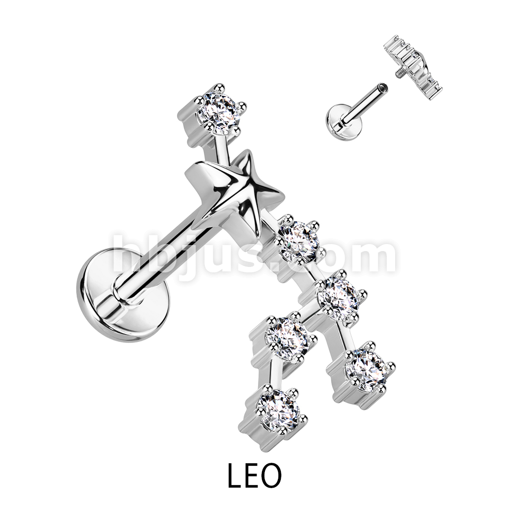 316L Surgical Steel Internally Threaded CZ Zodiac Constellation Labret Stud