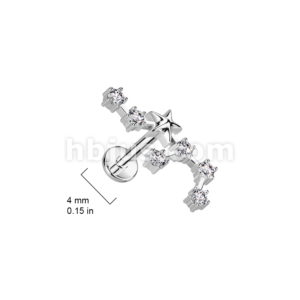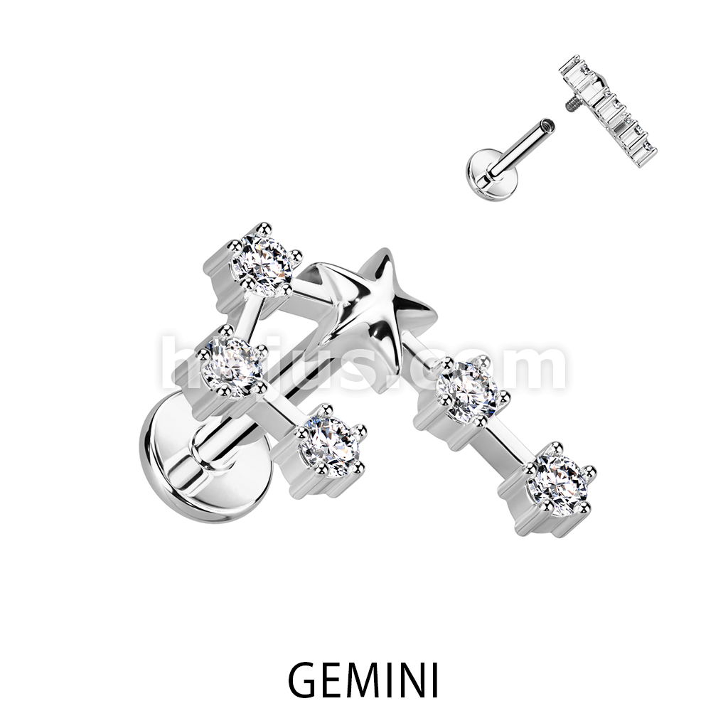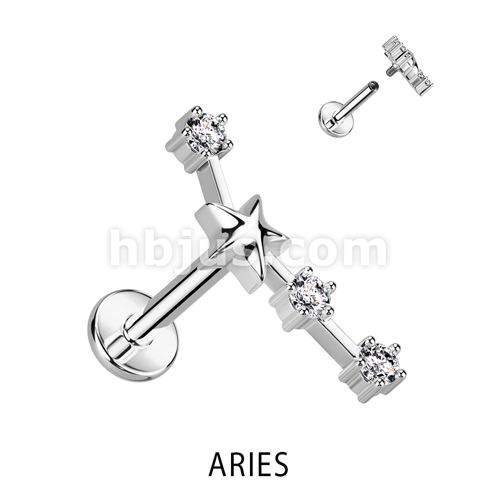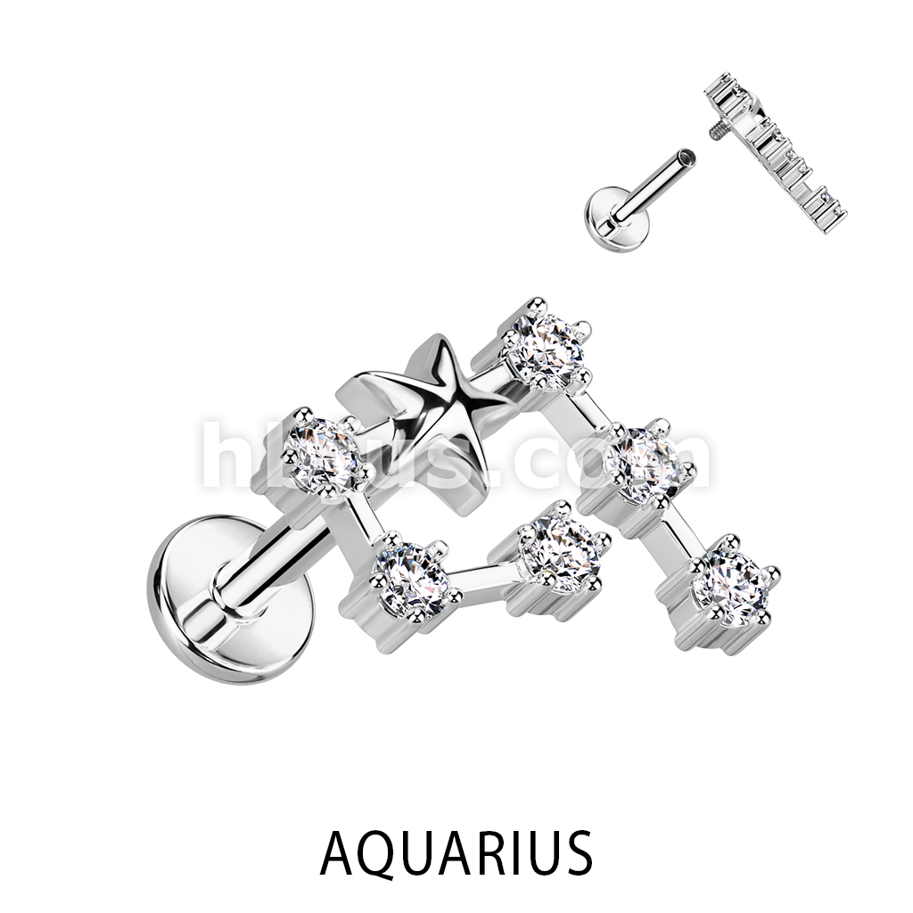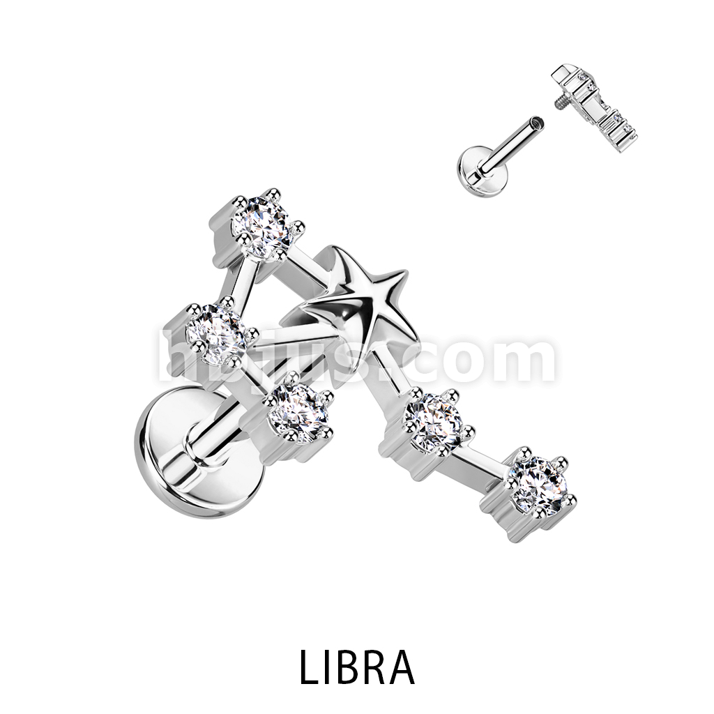 316L Surgical Steel Internally Threaded CZ Zodiac Constellation Labret Stud