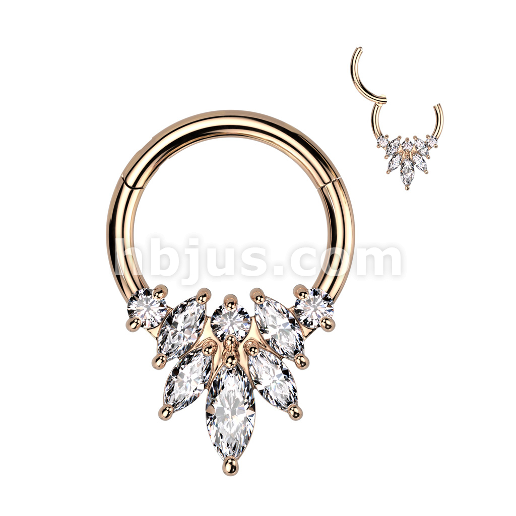 High Quality Precision 316L Surgical Steel Hinged Segment Ring With Marquise CZ Flower