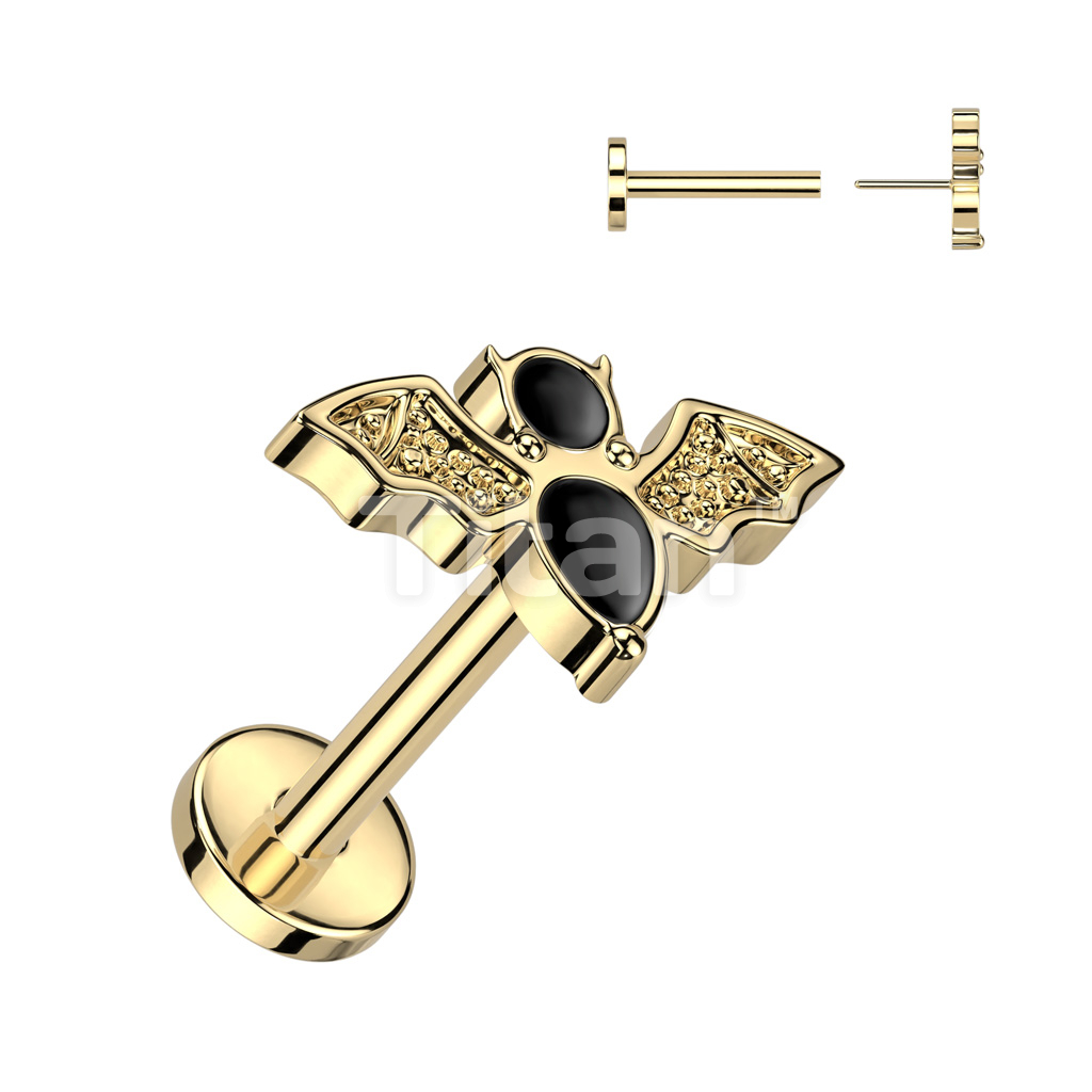 Implant Grade Titanium Threadless Push In Labret With Black Enamel Bat Top