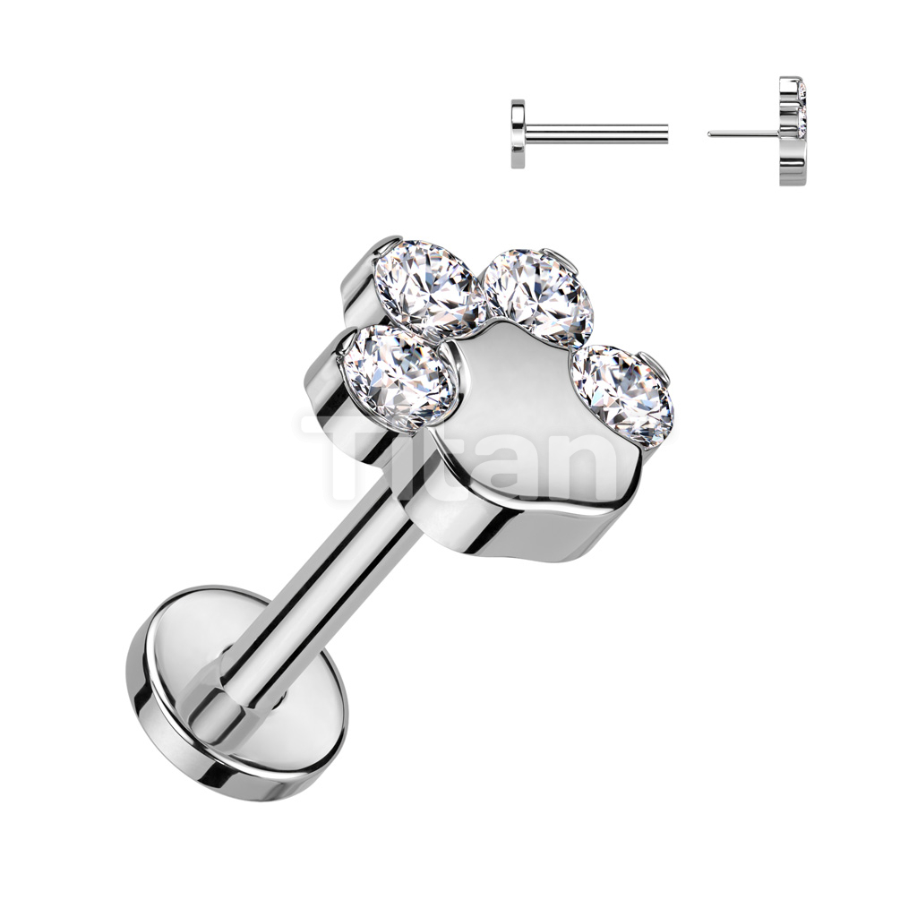 Implant Grade Titanium Threadless Push In Labret With CZ Paw Top
