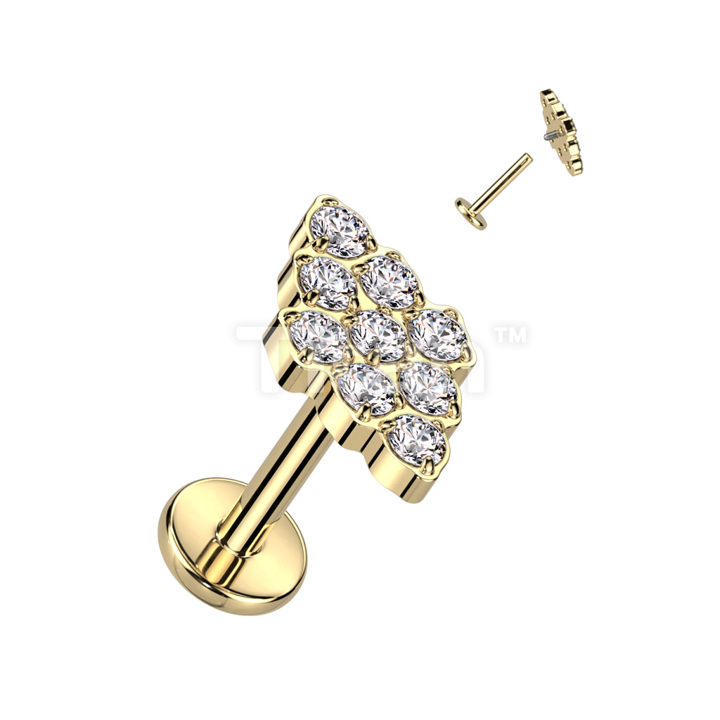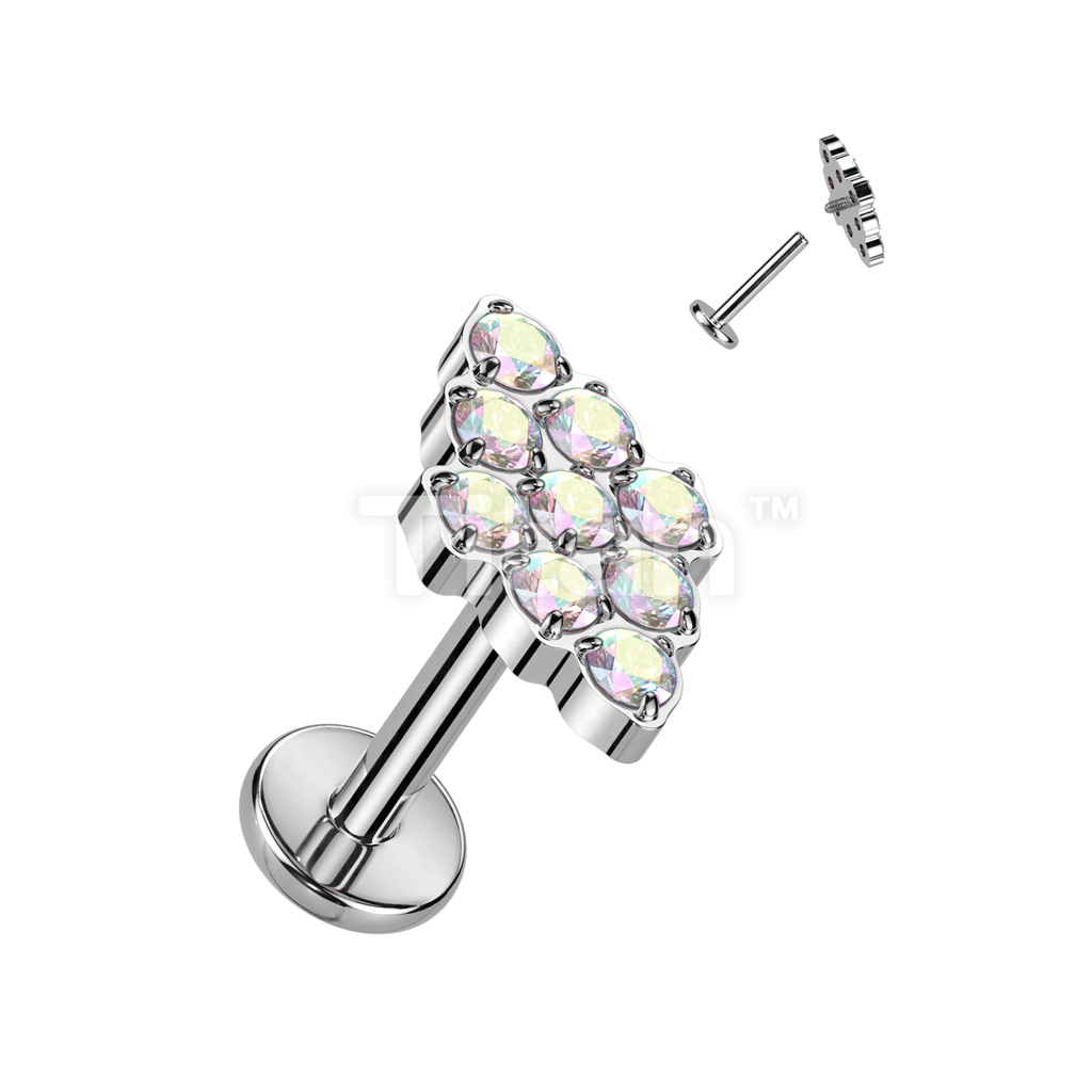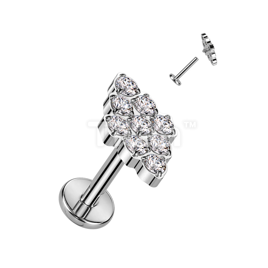 Implant Grade Titanium Internally Threaded Diamond Shaped Top With CNC Set CZ Labret