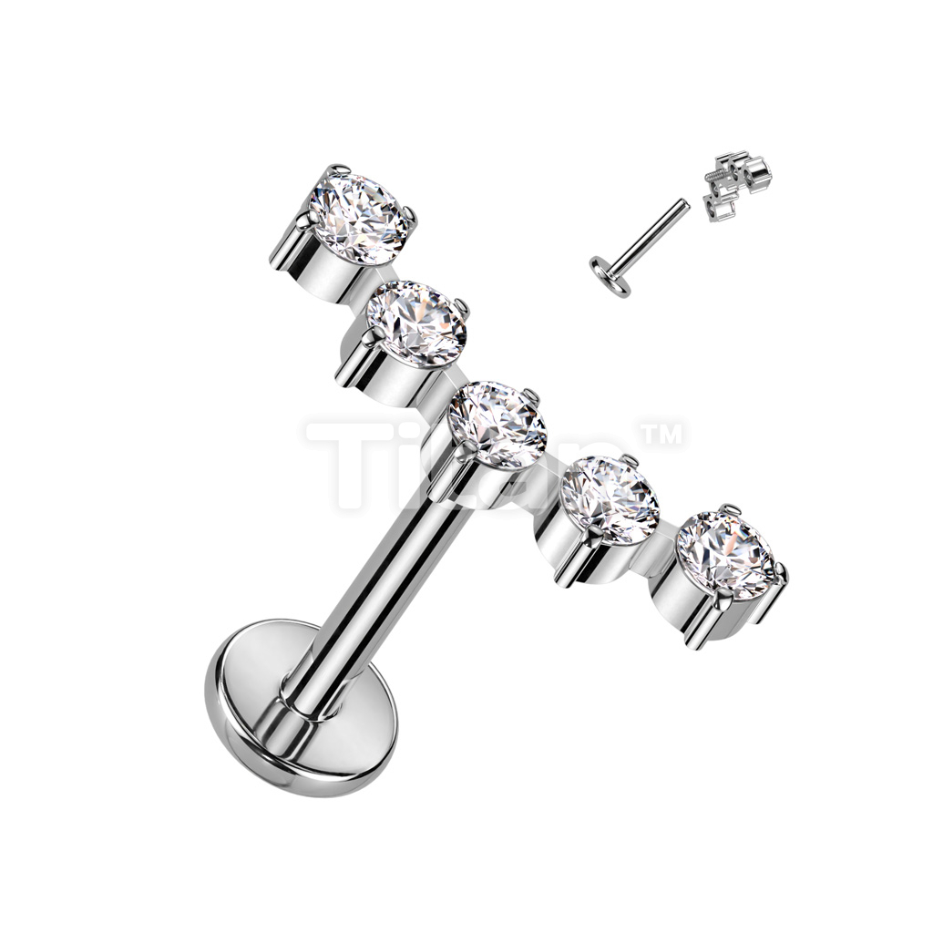 Implant Grade Titanium Internally Threaded With 5 Round CZ Curved Top