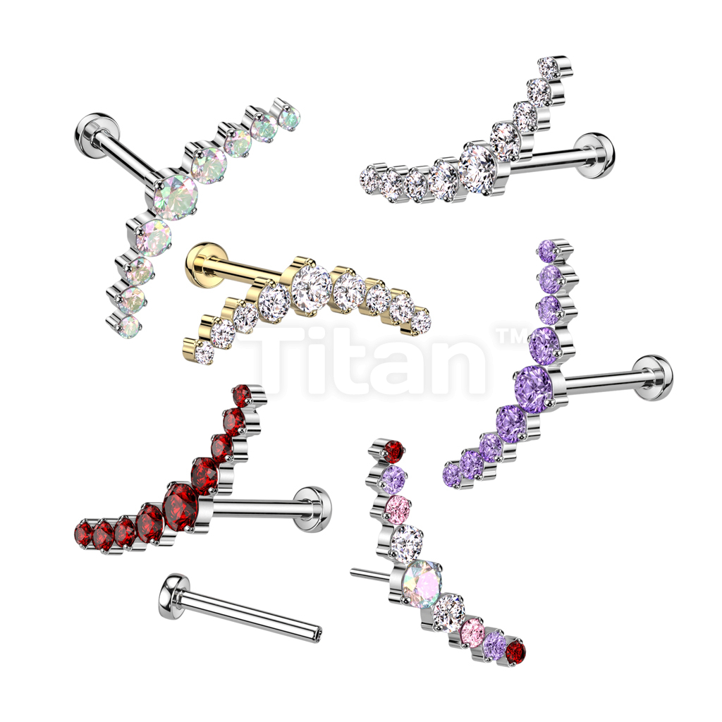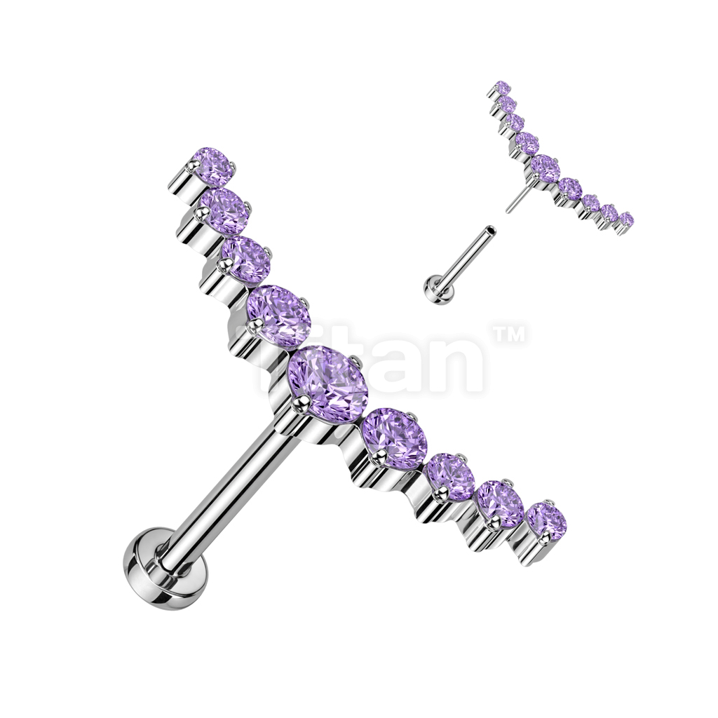 Implant Grade Titanium Threadless Push In Labret With 9 CZ Curved Top
