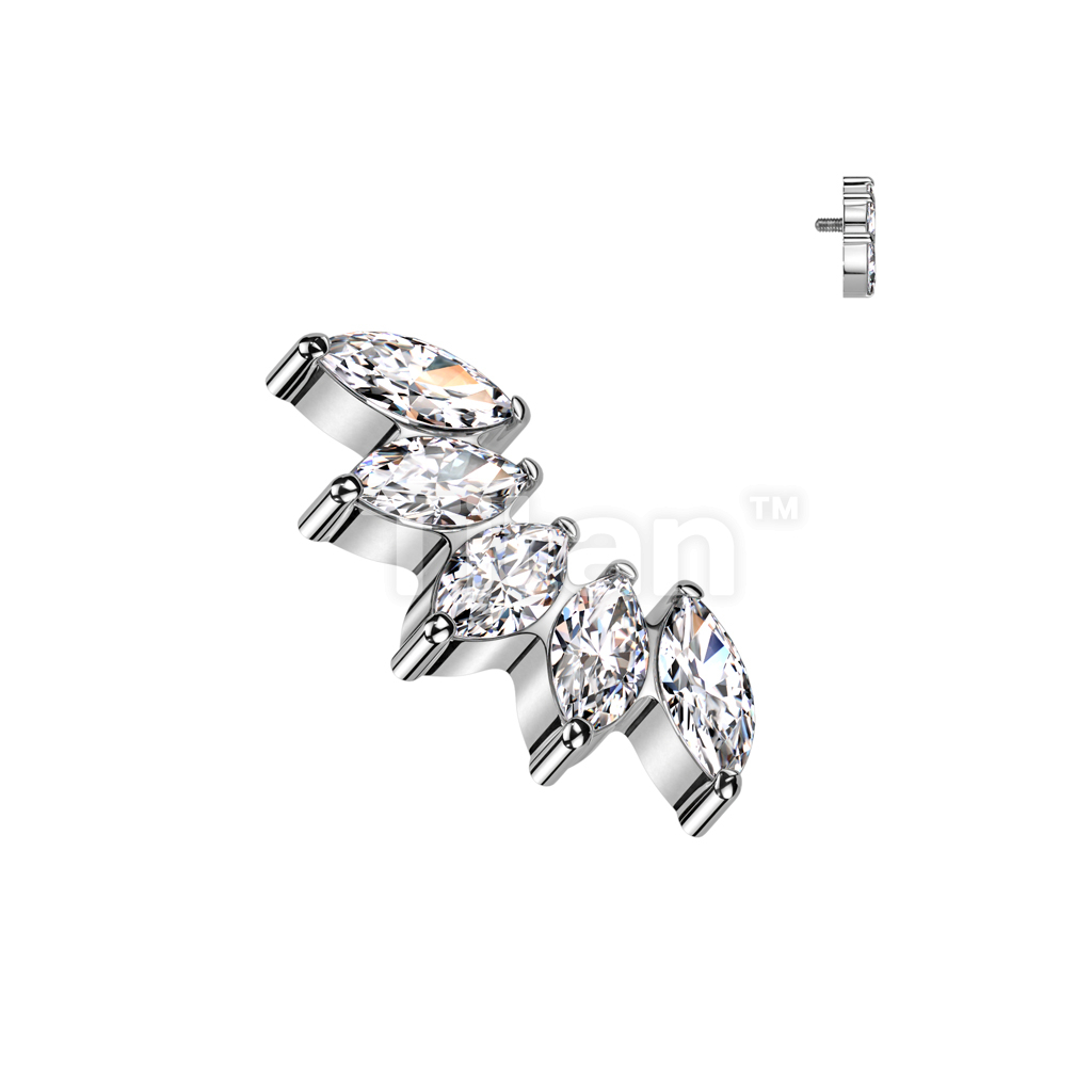 Implant Grade Titanium Internally Threaded 5 Marquise CZ Fan Top
