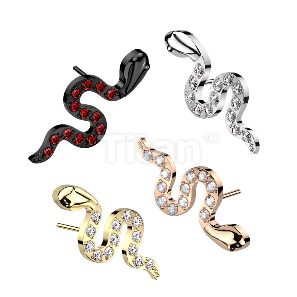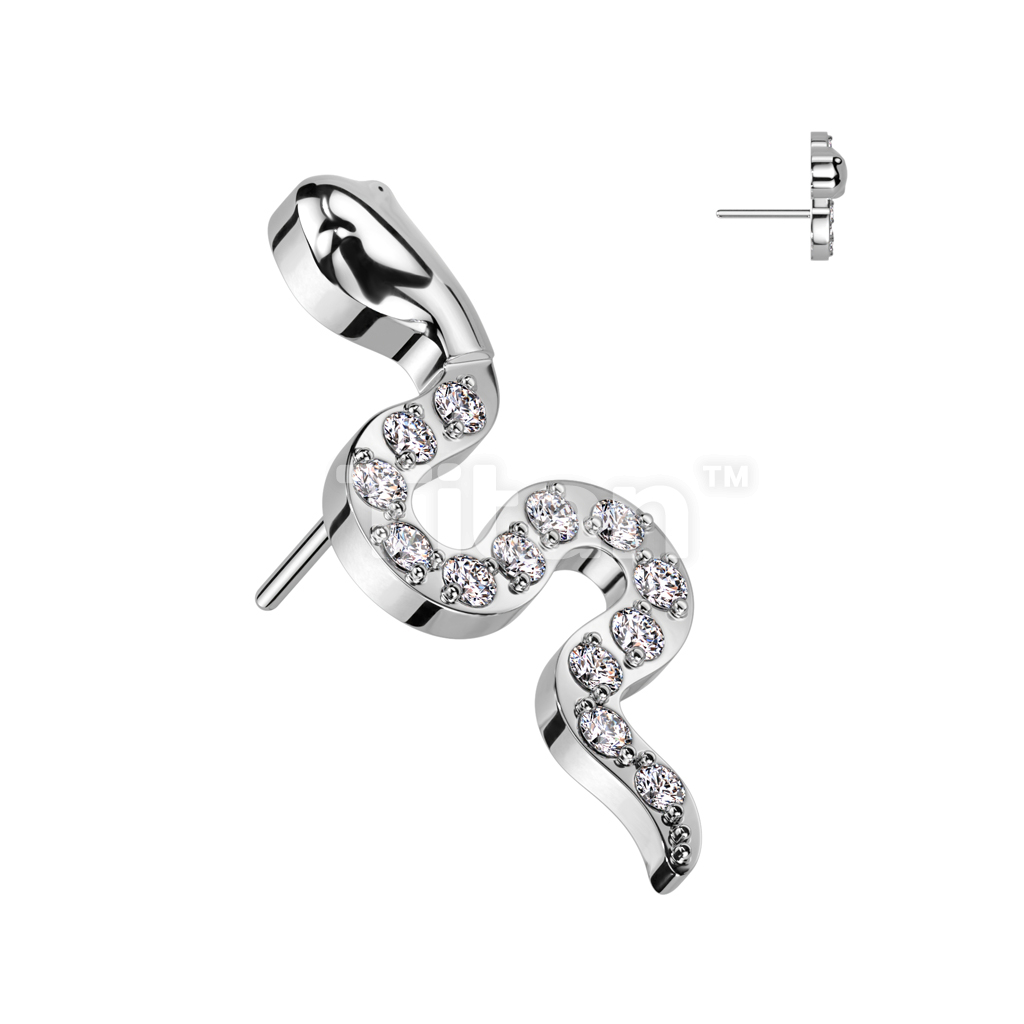 Implant Grade Titanium Threadless Push In CZ Pave Snake Top
