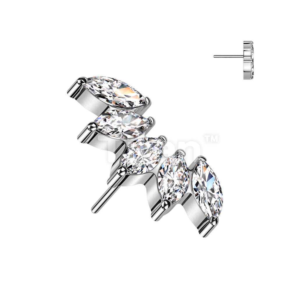 Implant Grade Titanium Threadless Push In 5 Marquise CZ Fan Top
