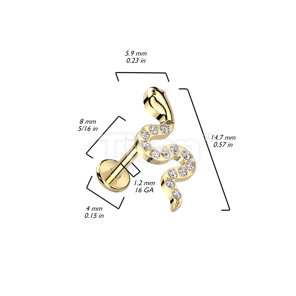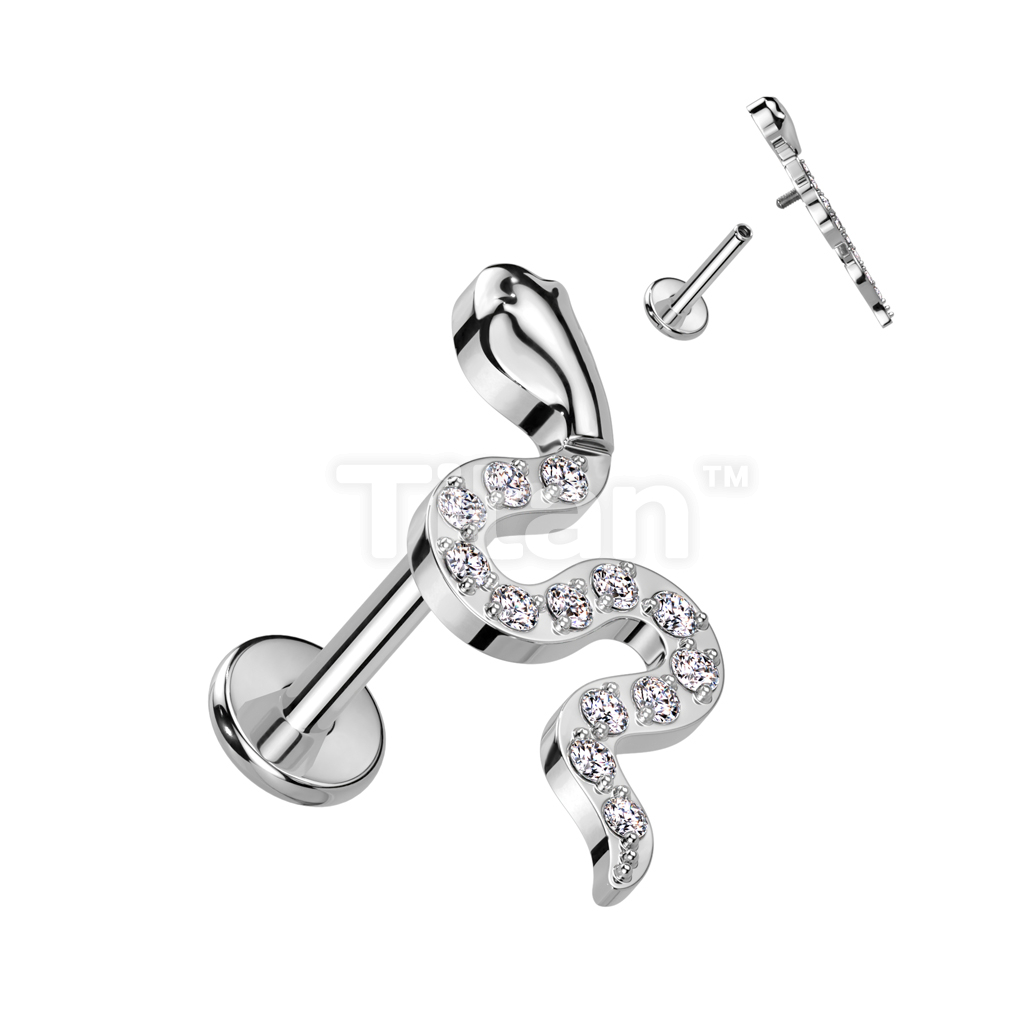Implant Grade Titanium Internally Threaded Labret With CZ Pave Snake Top