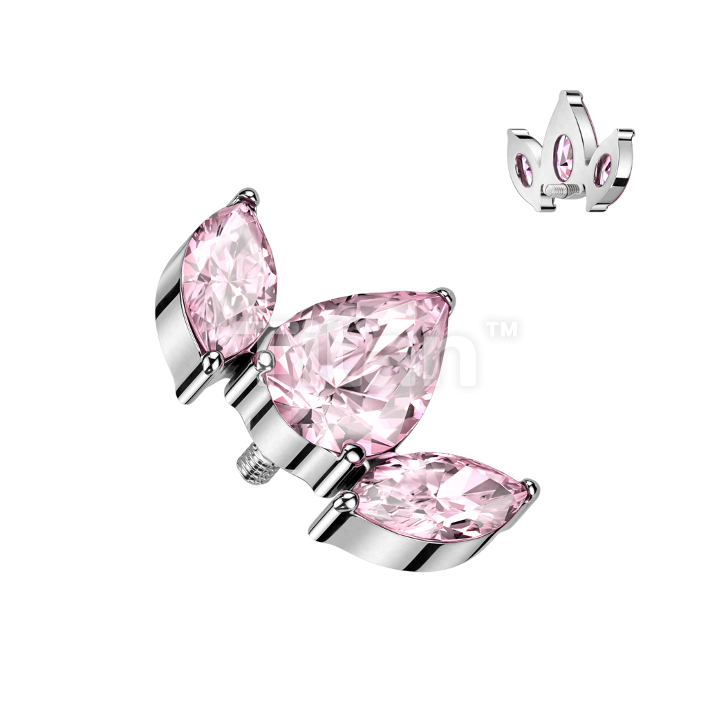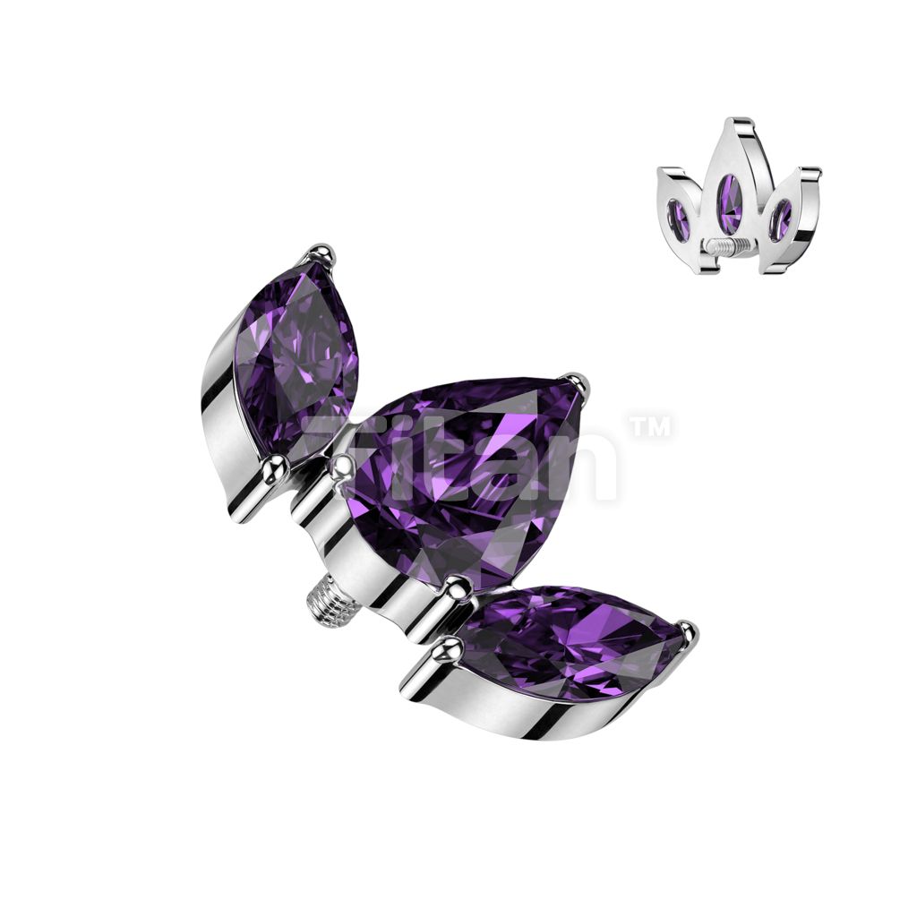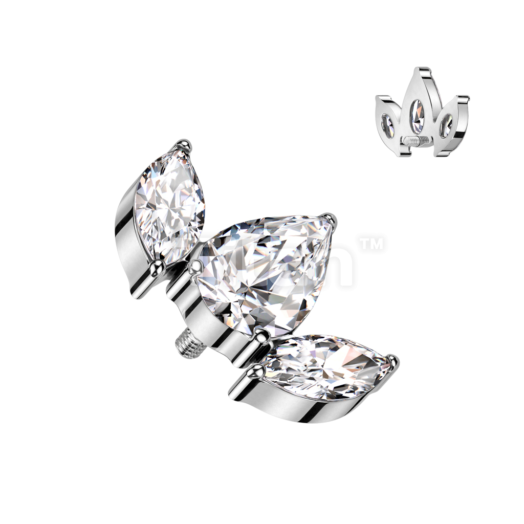 Implant Grade Titanium Internally Threaded Pear CZ Between 2 Marquise CZ Top