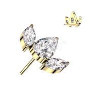 Implant Grade Titanium Threadless Push In Pear CZ Between 2 Marquise CZ Top