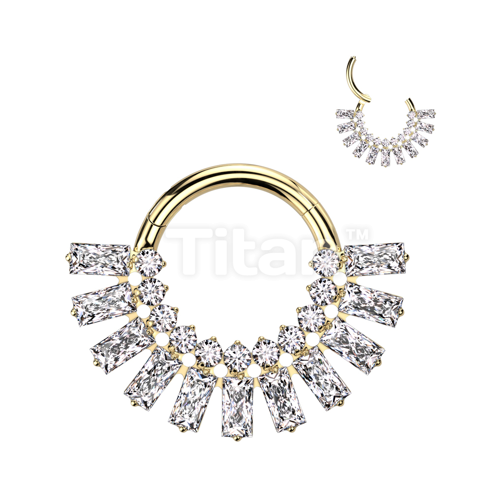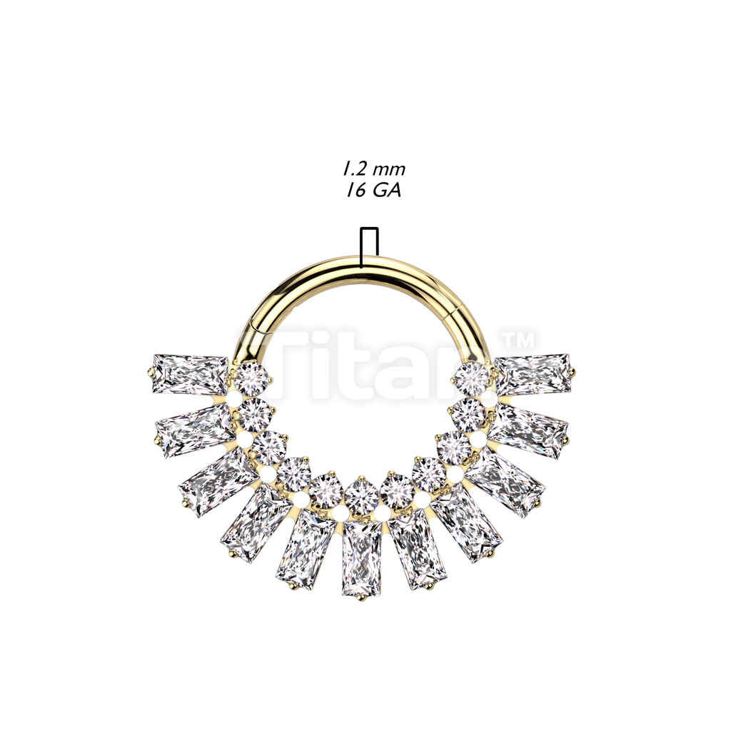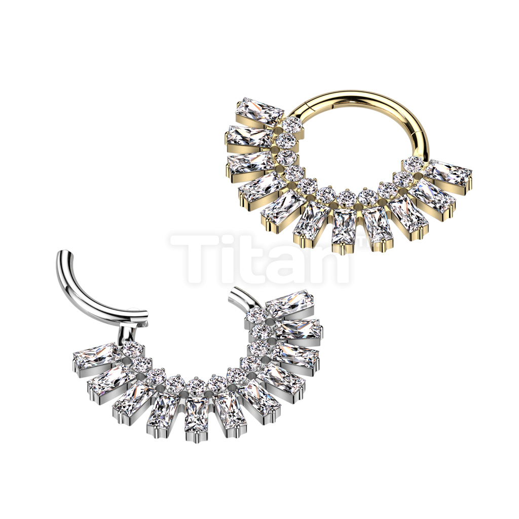 Implant Grade Titanium Hinged Segment Hoop Ring With Round and Baguette CZ Fan