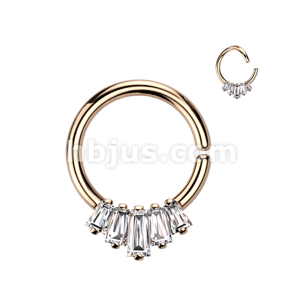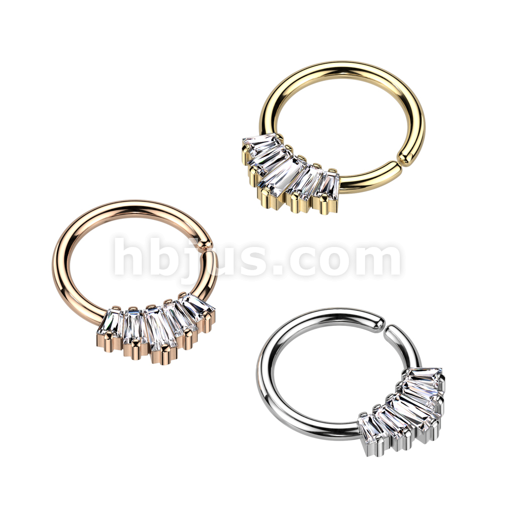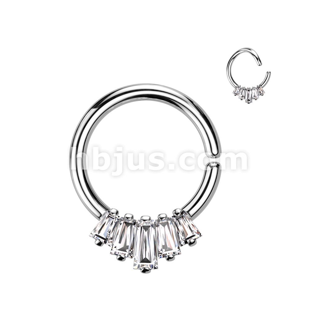 5 Baguette CZ Fan Front Bendable Hoop for Daith, Cartilage, Septum and More