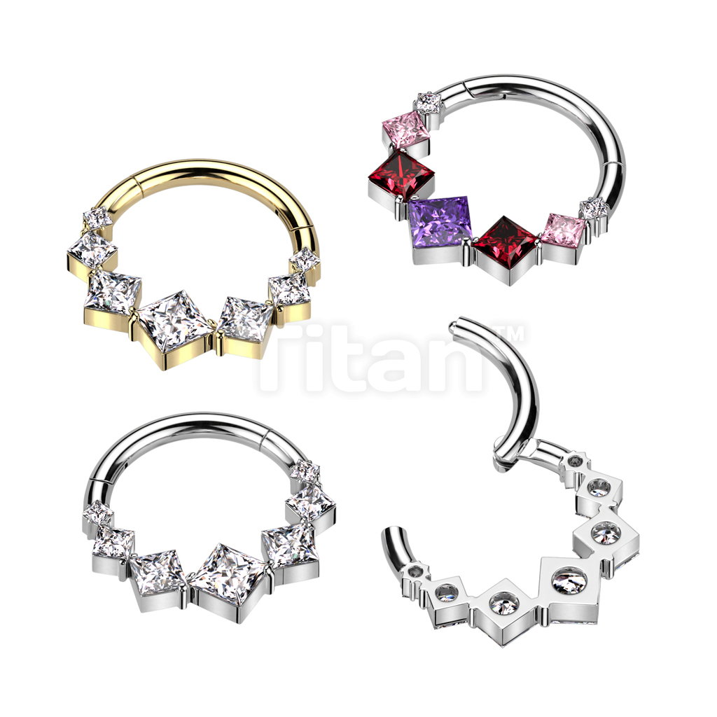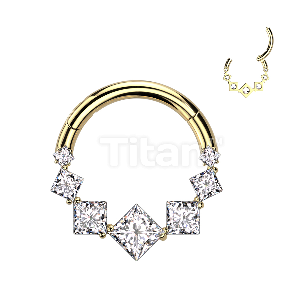 Implant Grade Titanium Hinged Segment Hoop Ring With 7 Square CZ