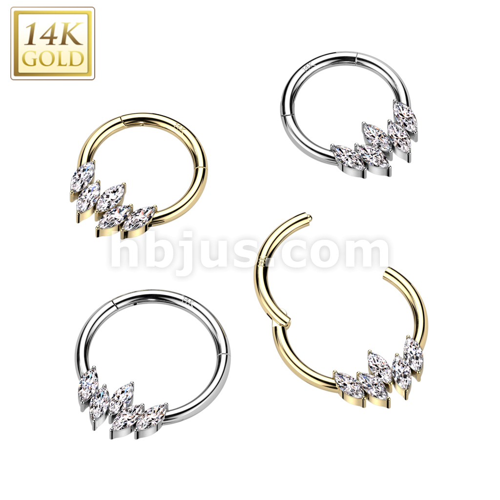 14K Gold Hinged Segment Ring With 5 Marquise CZ
