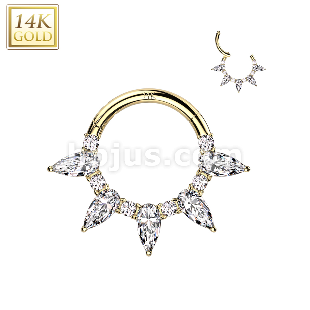 14K Gold Hinged Segment Ring With 5 Tear Drop CZ Fan