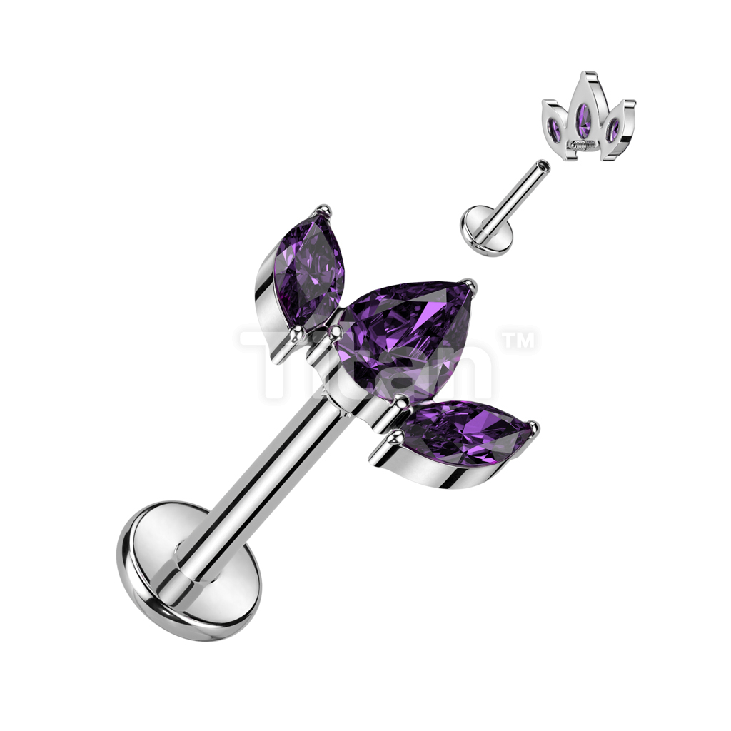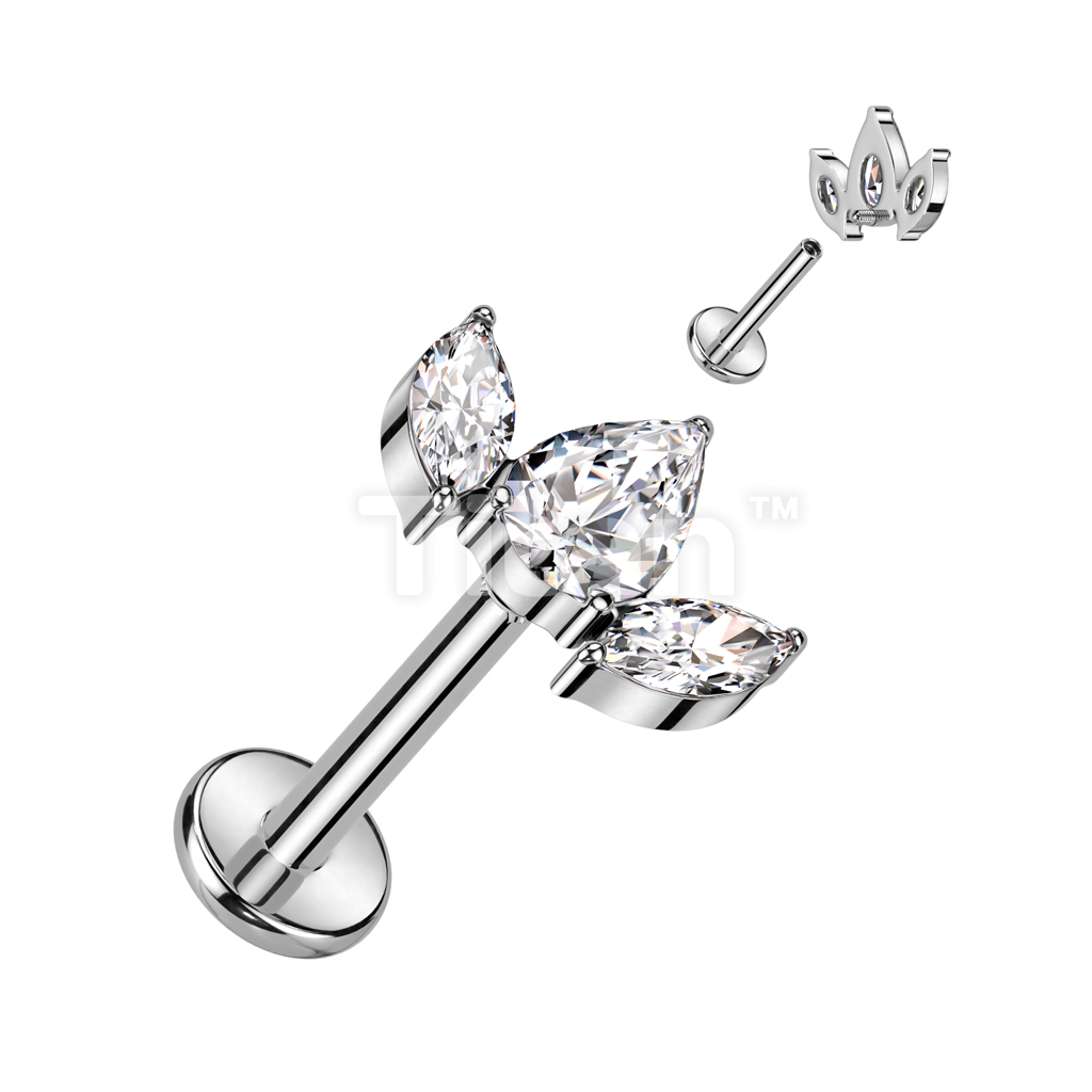 Implant Grade Titanium Internally Threaded Labret With Pear CZ Between 2 Marquise CZ Top