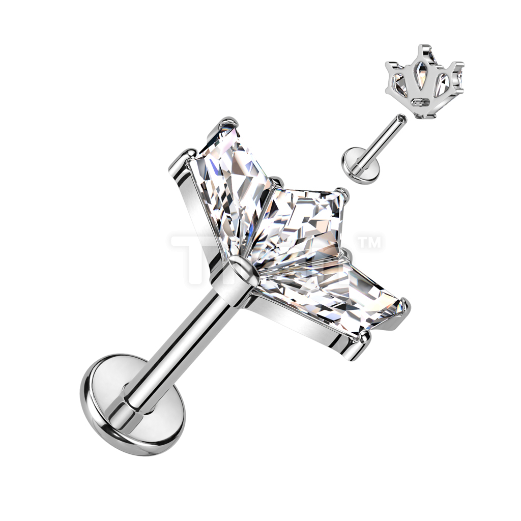Implant Grade Titanium Internally Threaded Labret With 3 CZ Fan Top