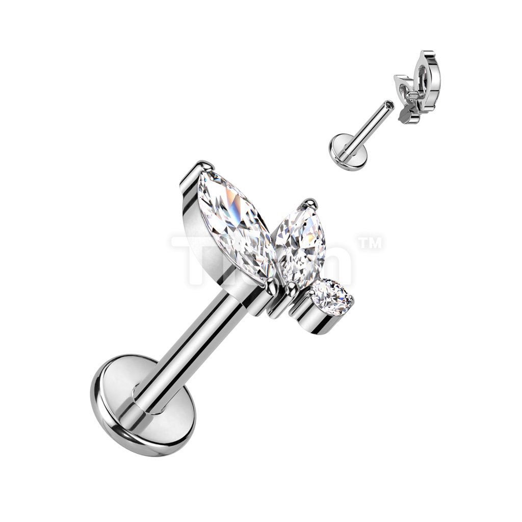 Implant Grade Titanium Internally Threaded Labret With Double Marquise and Round CZ Top