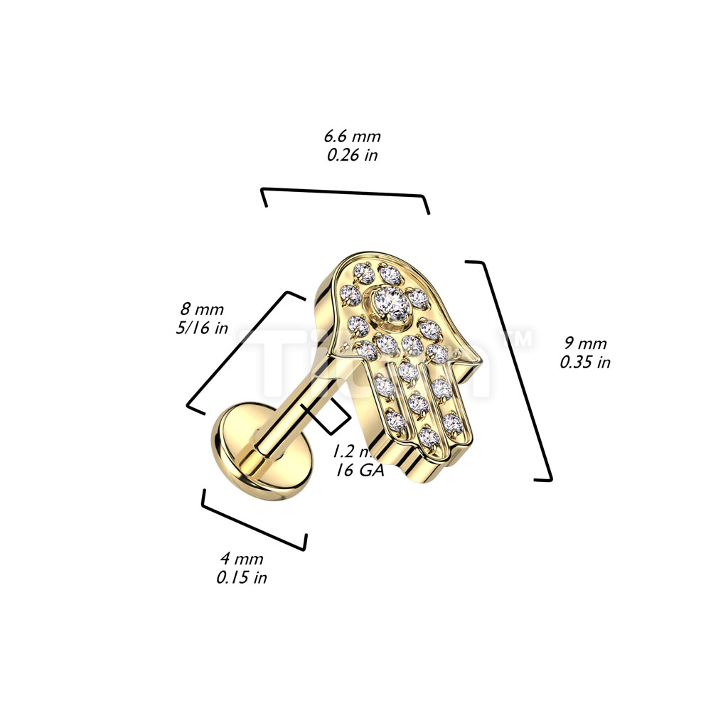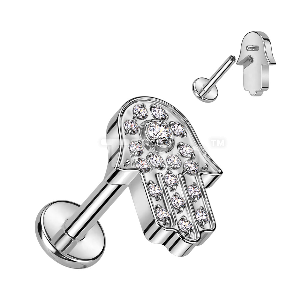 Implant Grade Titanium Internally Threaded Labret With Hamsa Pave CZ Top