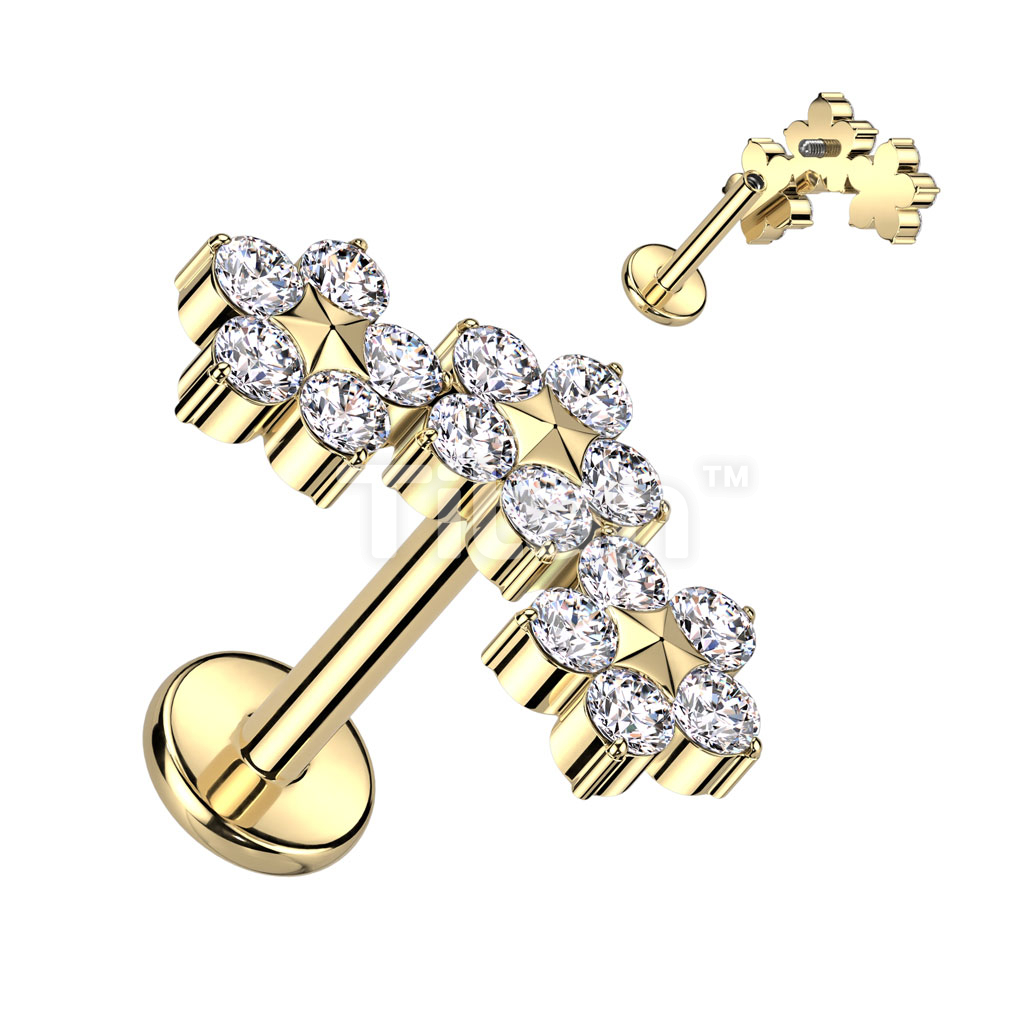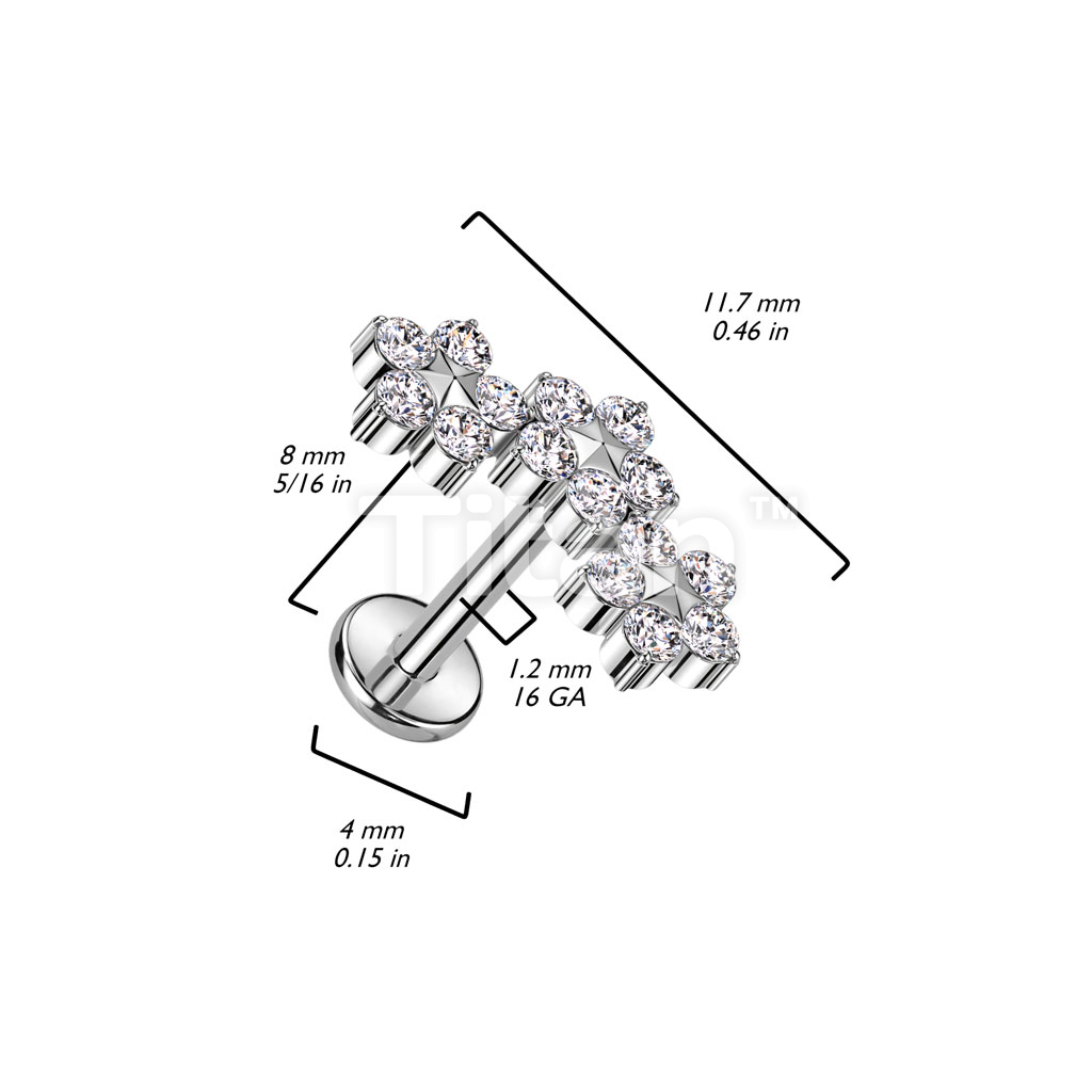 Implant Grade Titanium Internally Threaded Labret With Triple CZ Flower Top