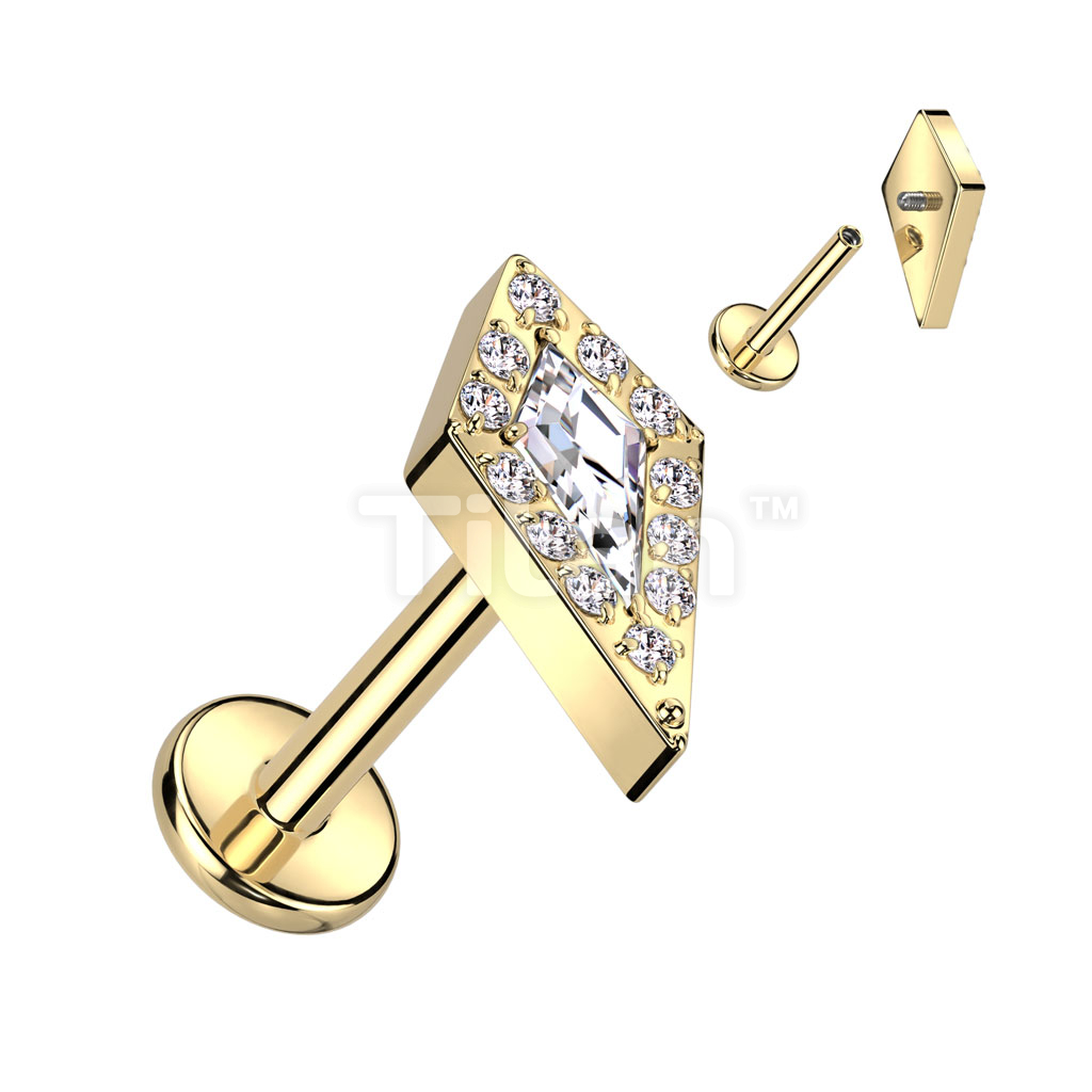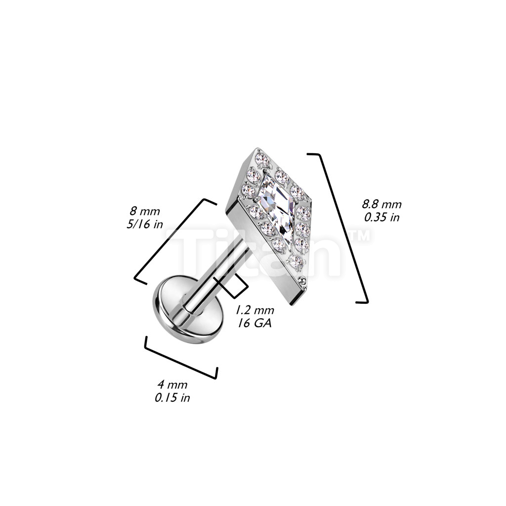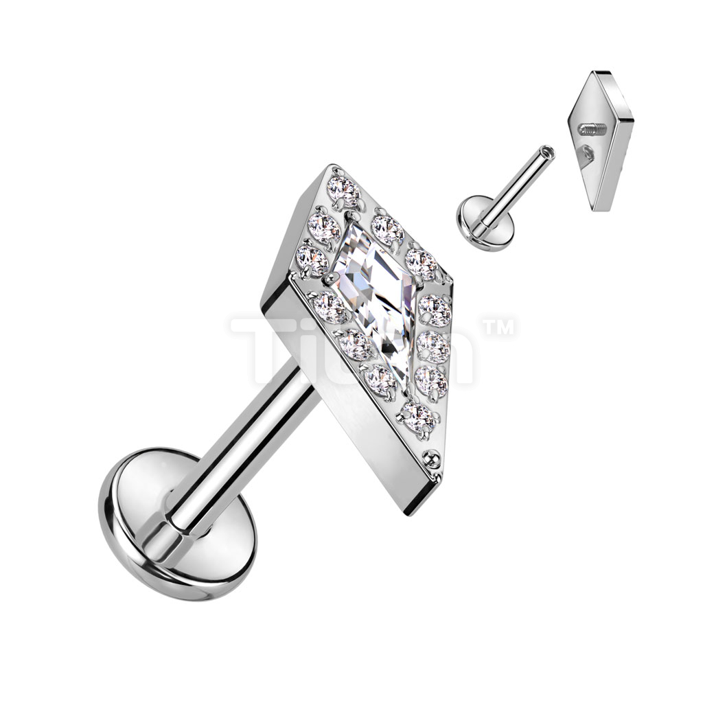Implant Grade Titanium Internally Threaded Labret With CZ Pave Spear Top