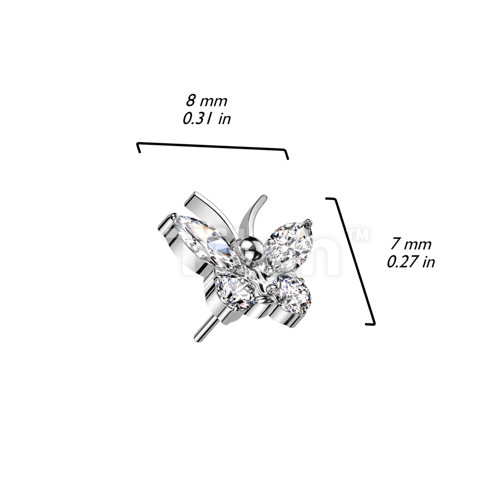 Implant Grade Titanium Threadless Push In CZ Butterfly Top