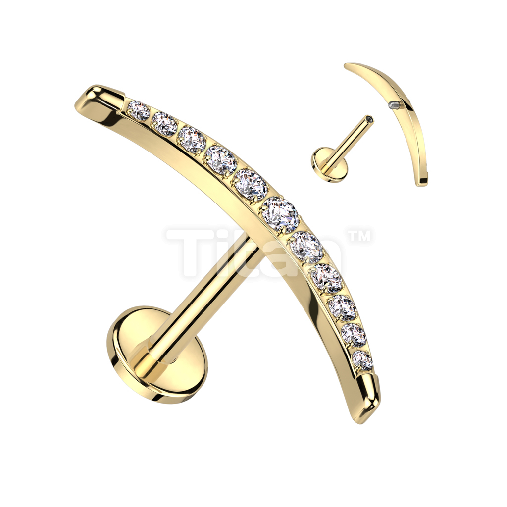 Implant Grade Titanium Internally Threaded Labret With CZ Pave Long Crescent Moon Top