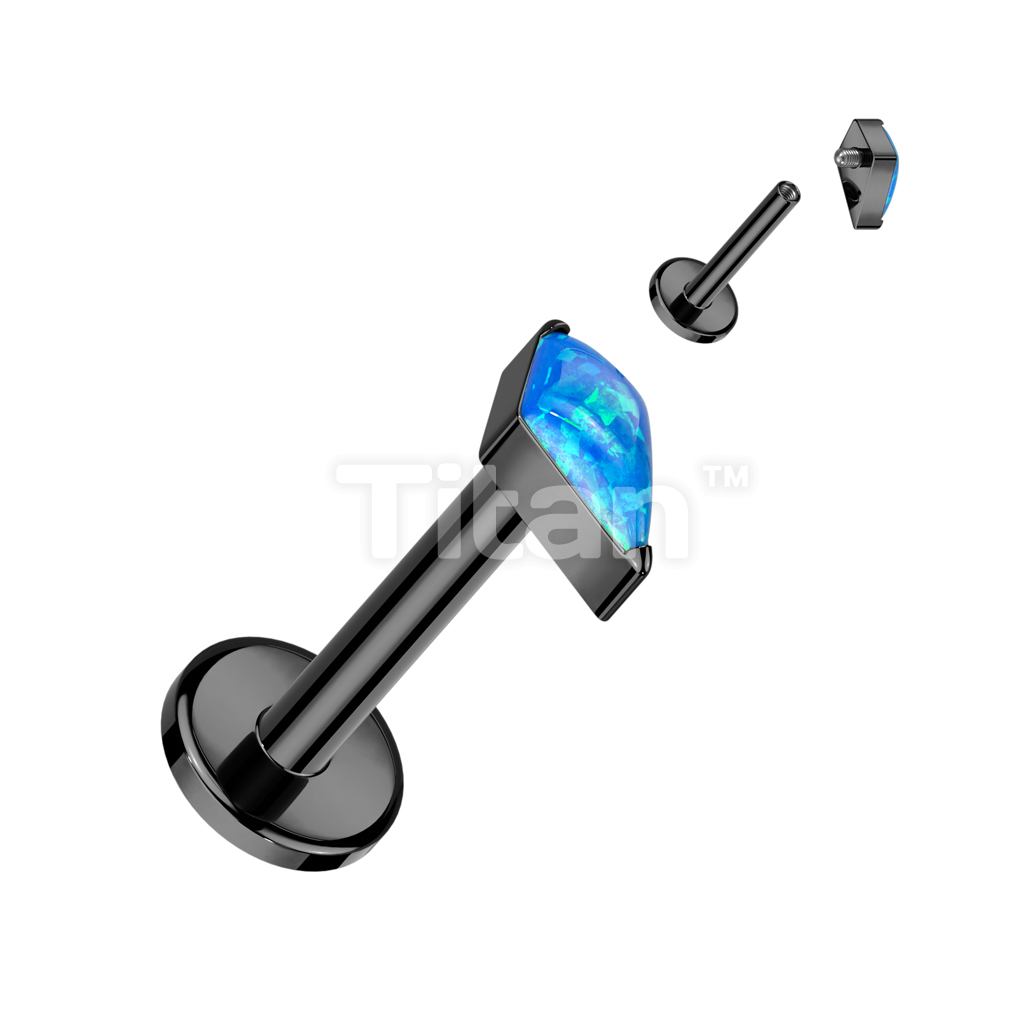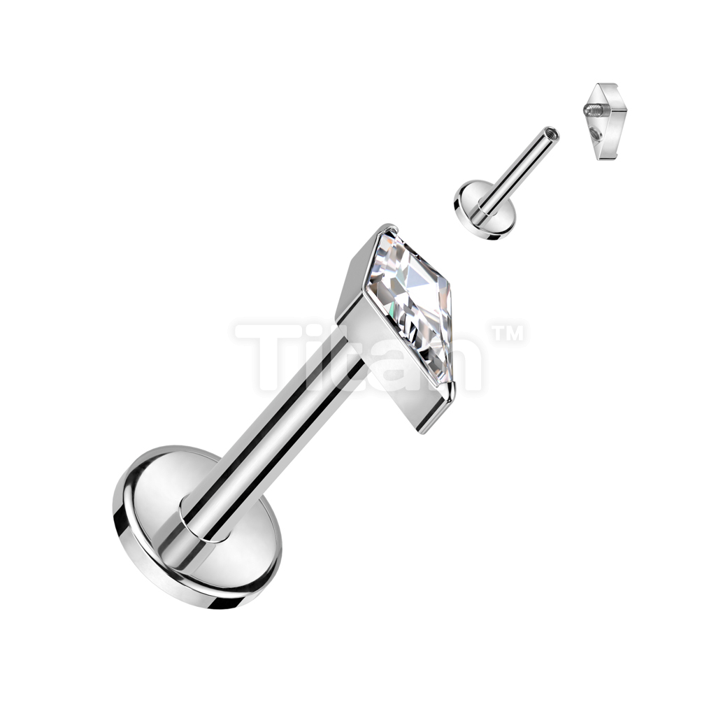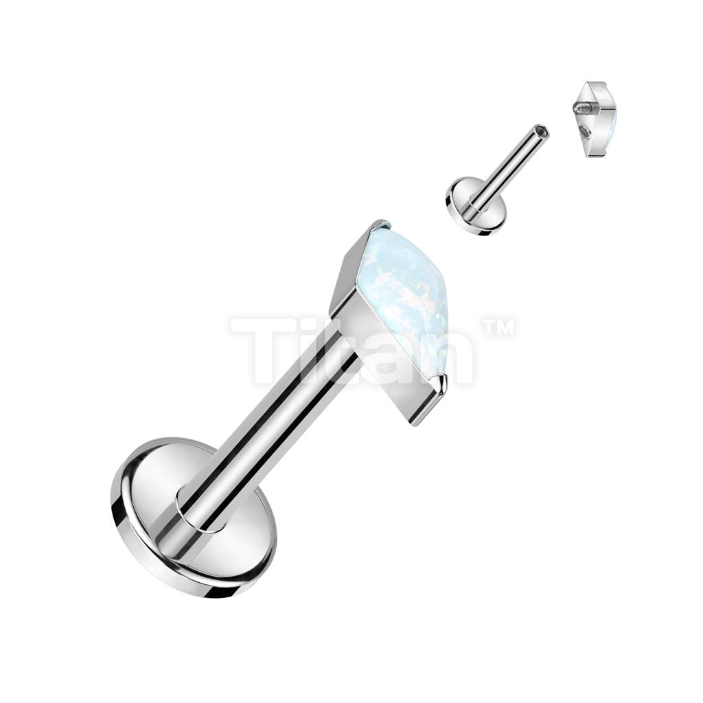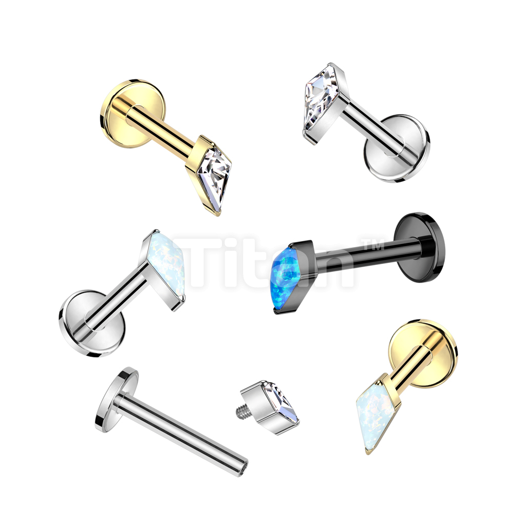 Implant Grade Titanium Internally Threaded Labret With Diamond Shaped CZ or Opal Spear Top