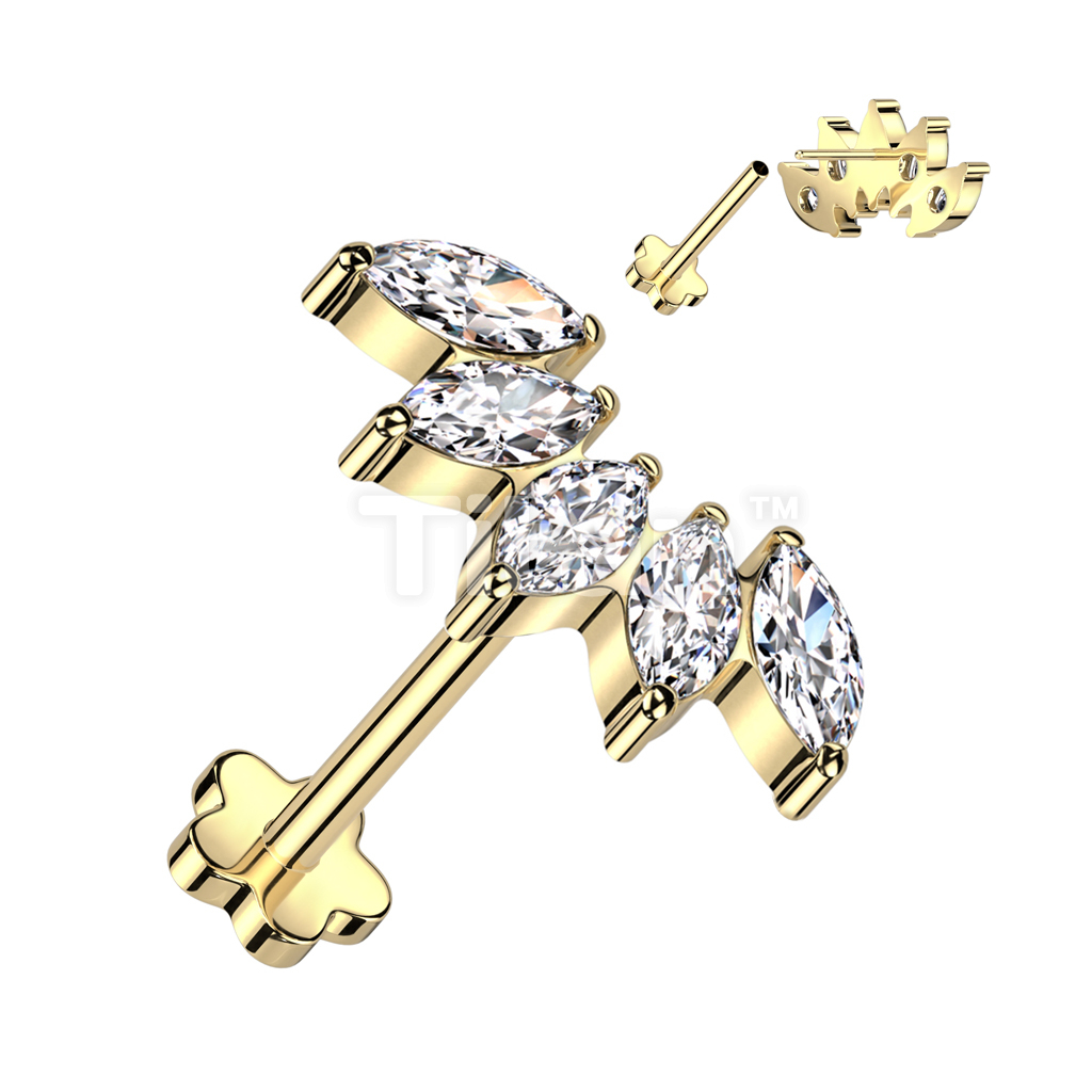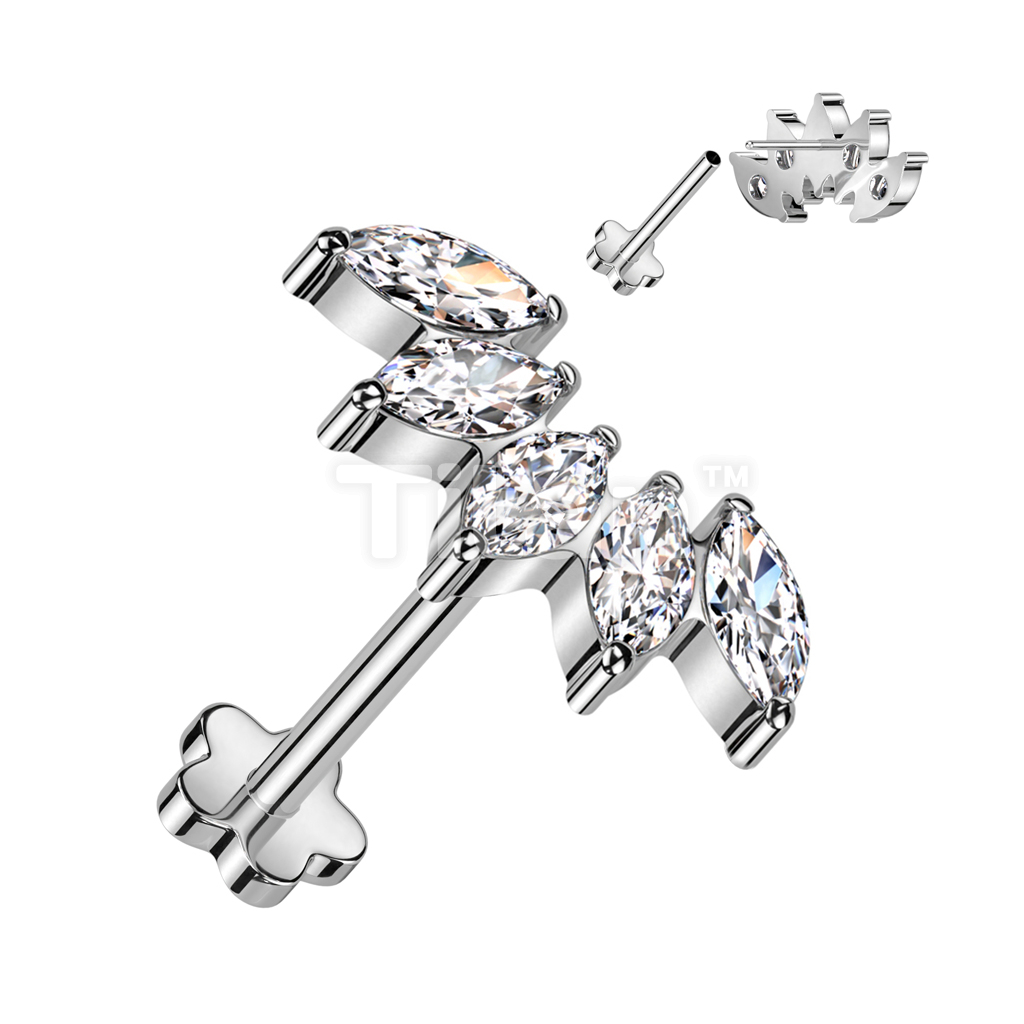 Implant Grade Titanium Threadless Push In Flower Base Labret With 5 Marquise CZ Fan Top