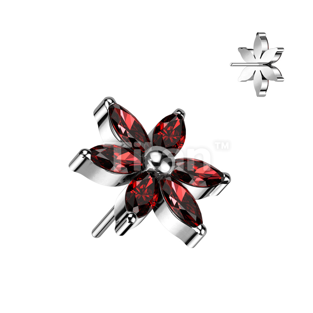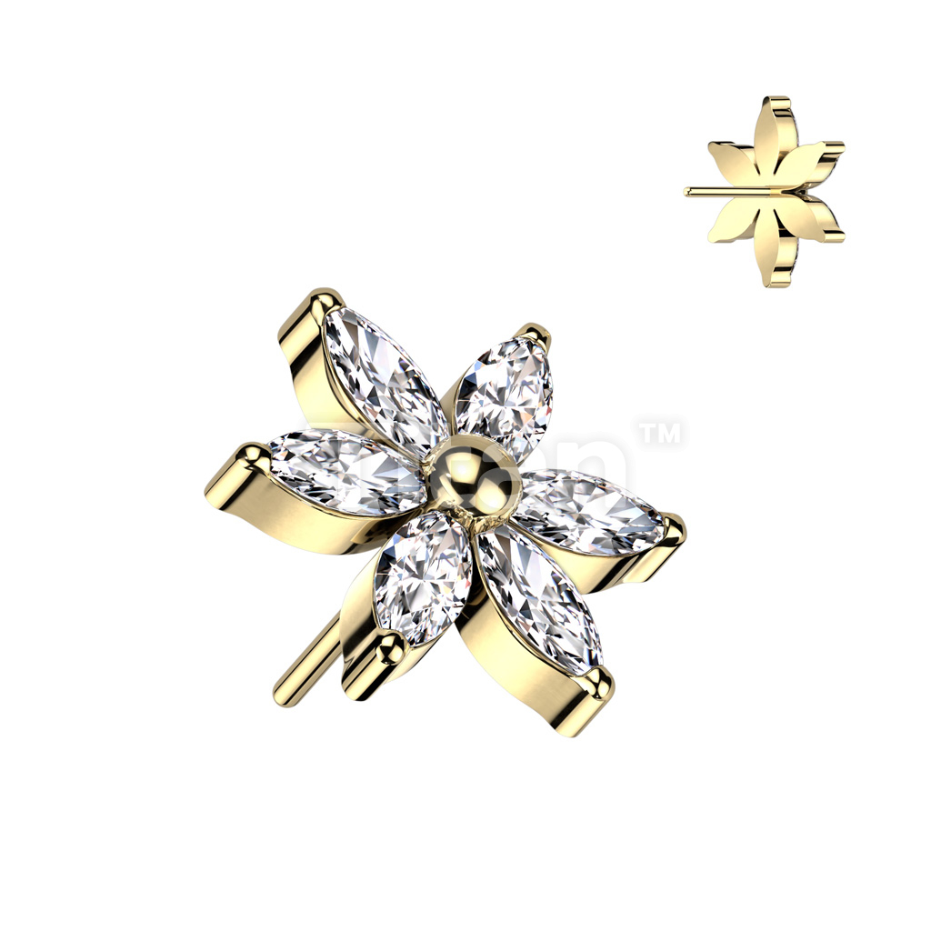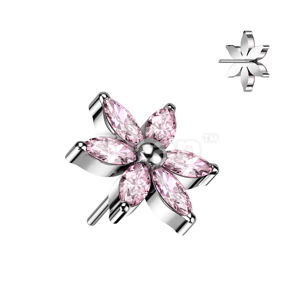 Implant Grade Titanium Threadless Push In 6 Marquise CZ Petals Flower