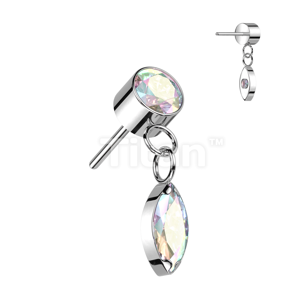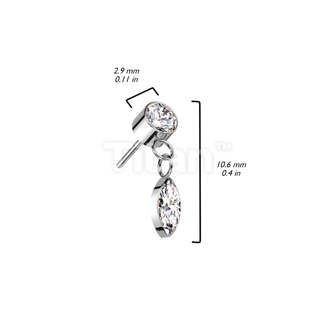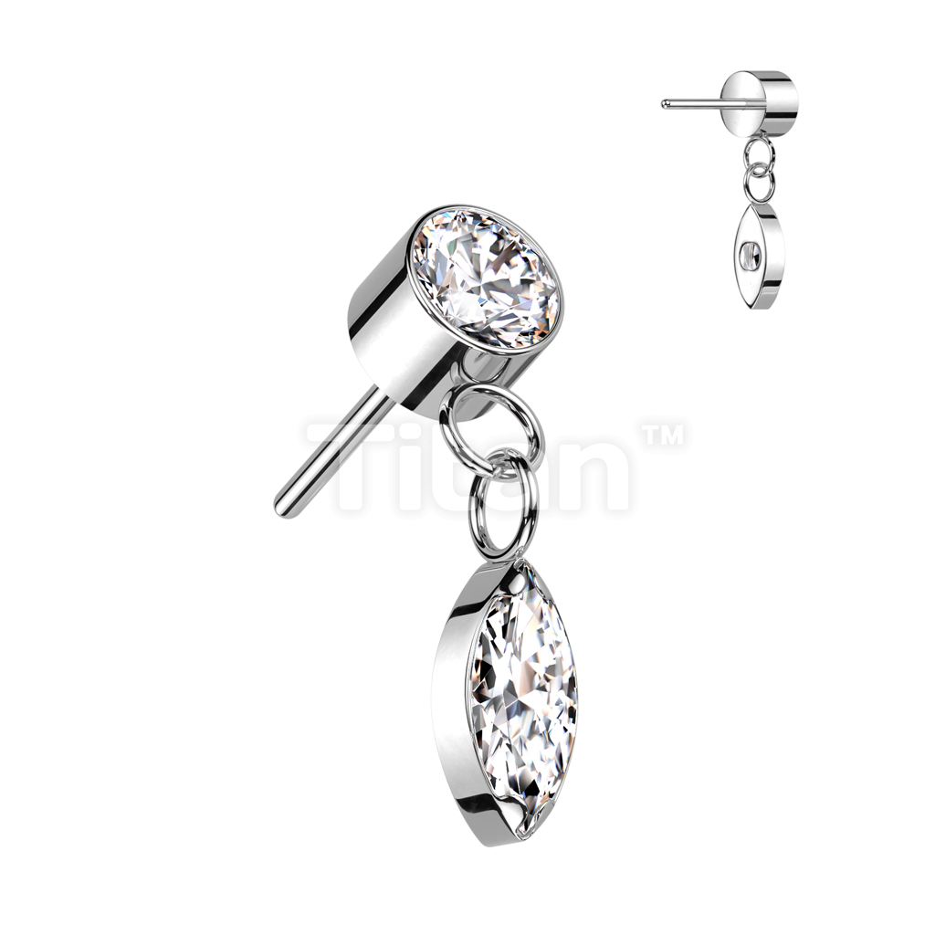 Implant Grade Titanium Threadless Push In Round Bezel Set CZ With Marquise CZ Dangle Top