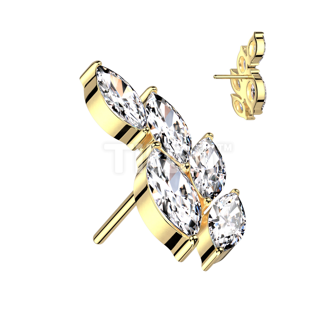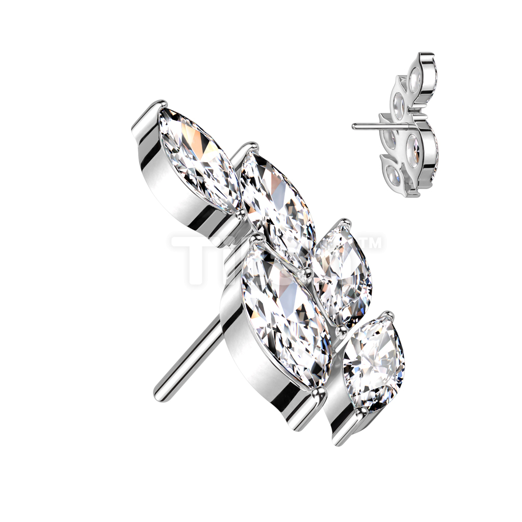 Implant Grade Titanium Threadless Push In 5 Marquise CZ Vine Top