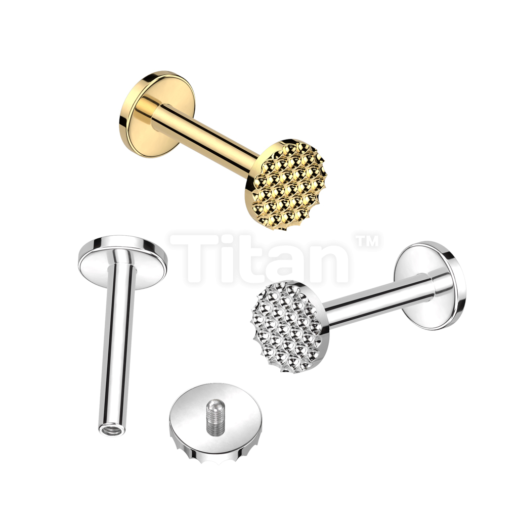 Implant Grade Titanium Internally Threaded Labret With Bumped Cut Round Top