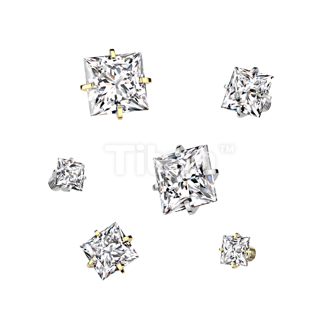 Implant Grade Titanium Internally Threaded Prong Set Square CZ Top