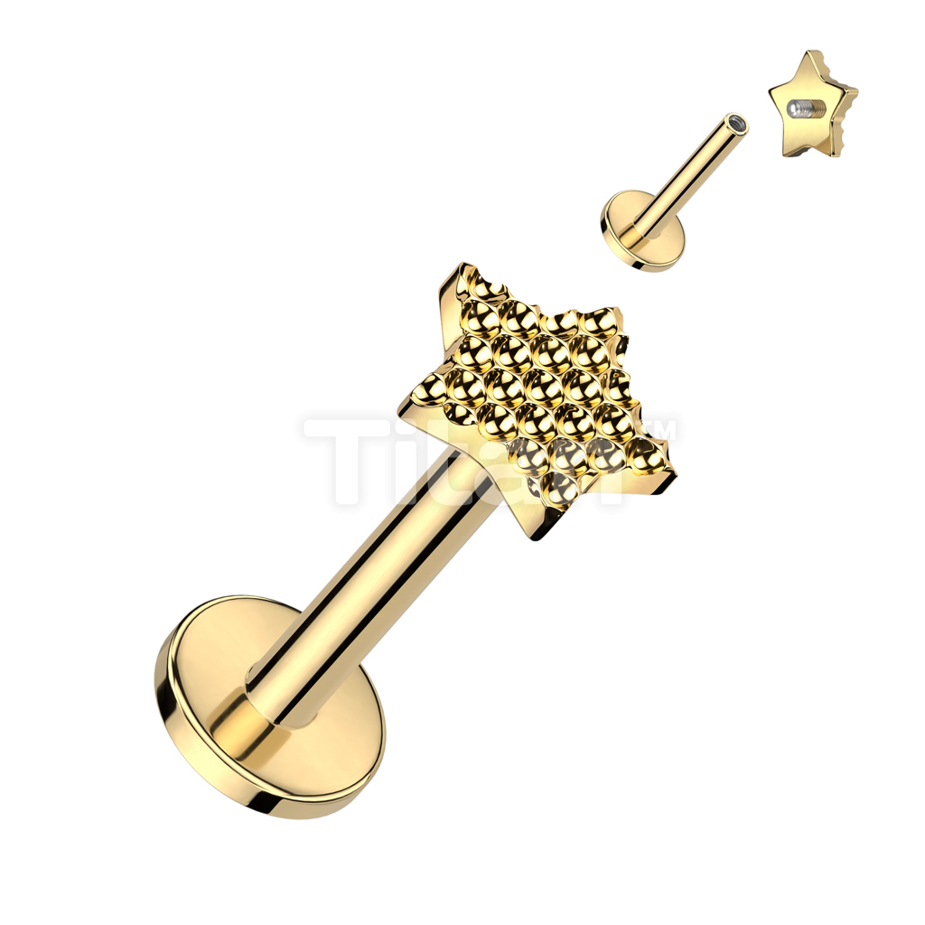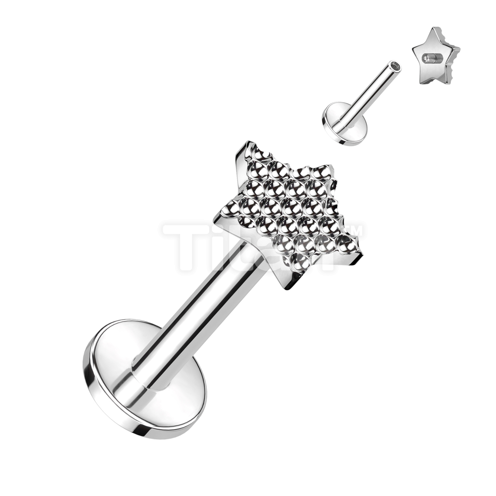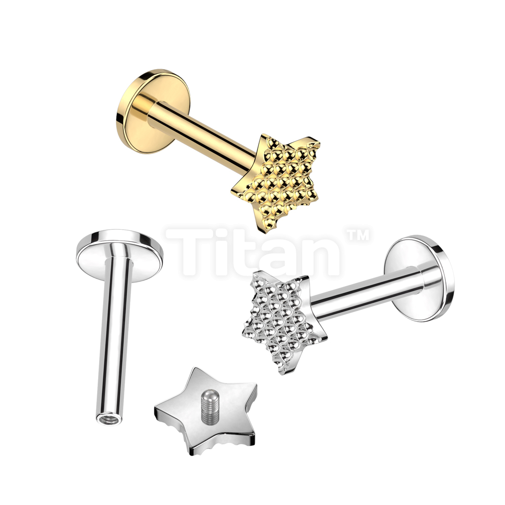 Implant Grade Titanium Internally Threaded Labret With Bumped Cut Star Top
