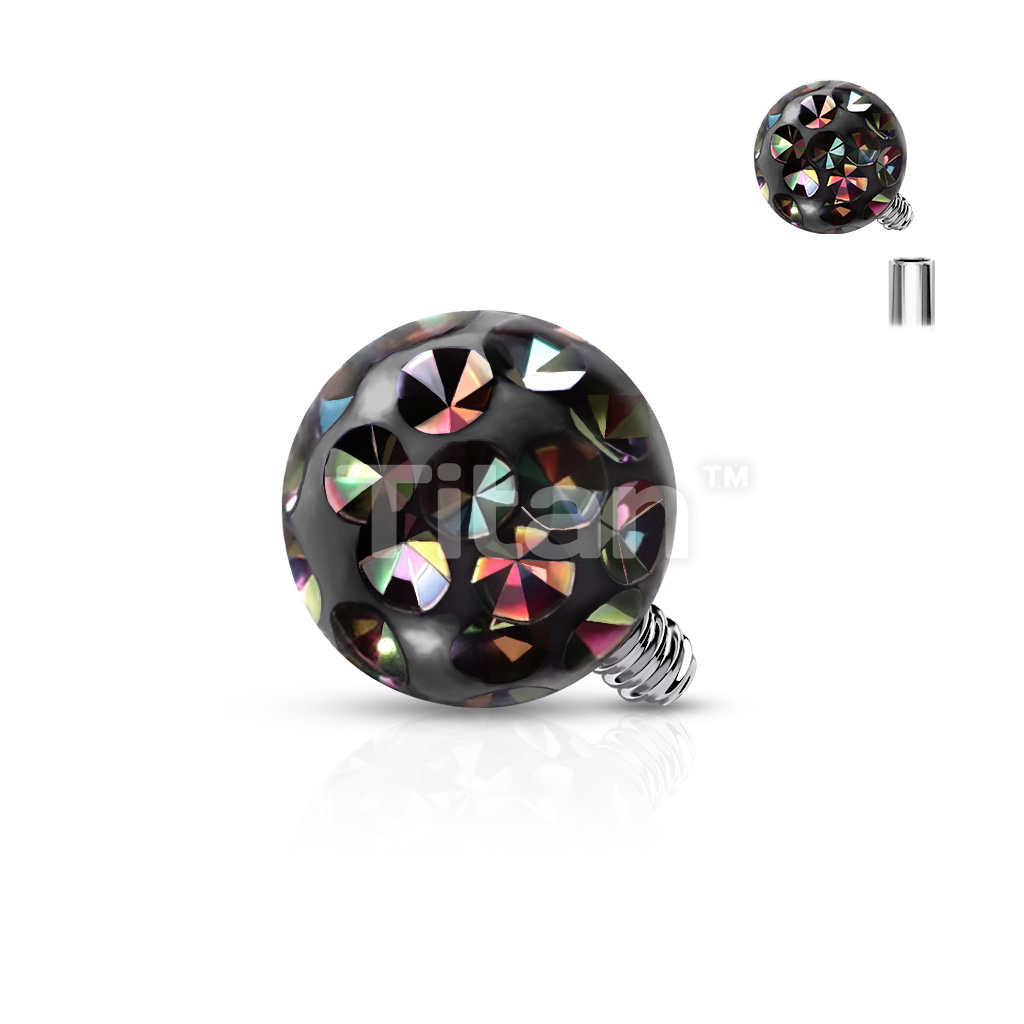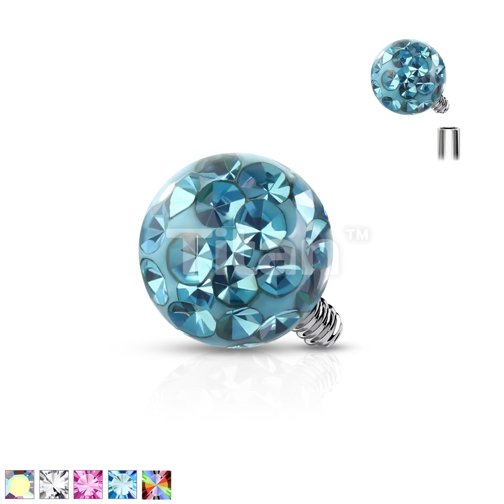 Implant Grade Titanium Internally Threaded Pave Crystal Ball With Epoxy Coating Top