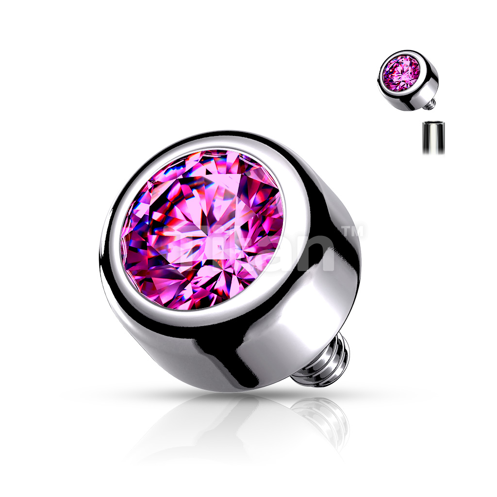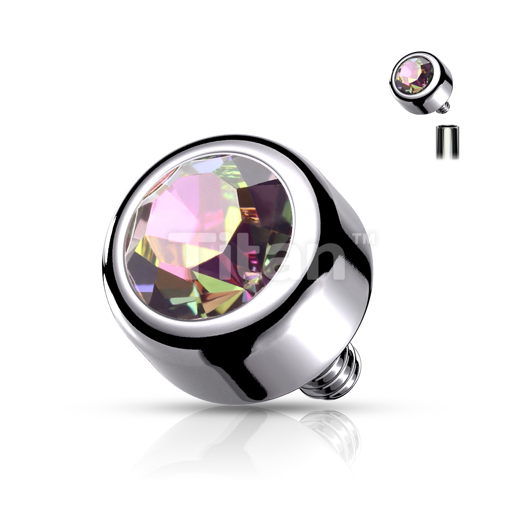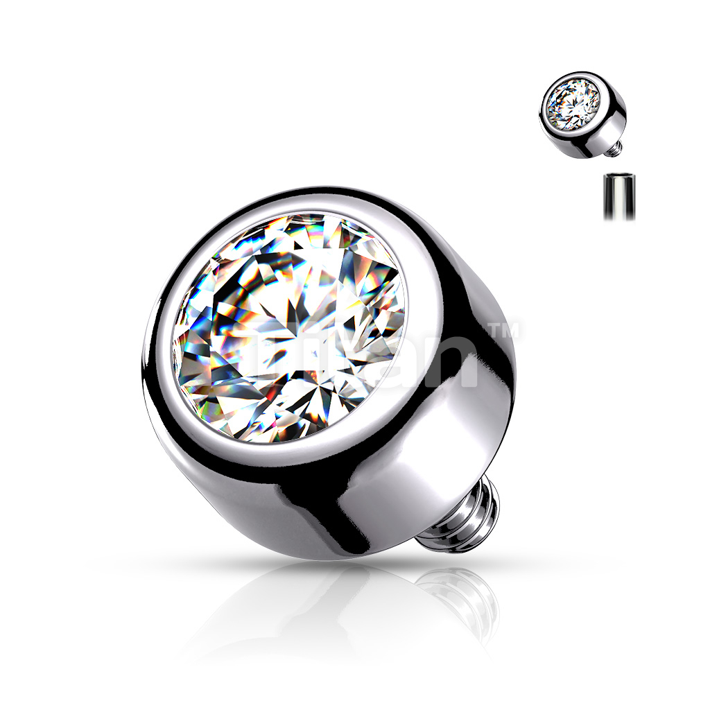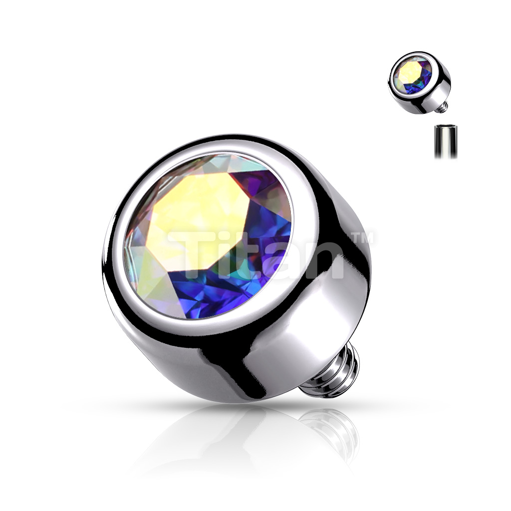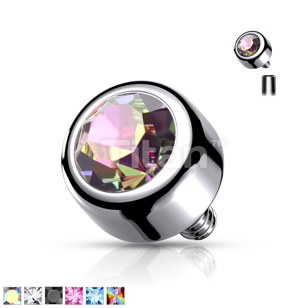 Implant Grade Titanium Internally Threaded Bezel Set Round Swarovski Crystal Top