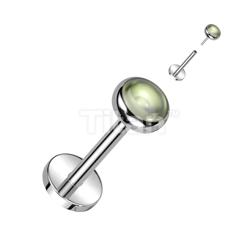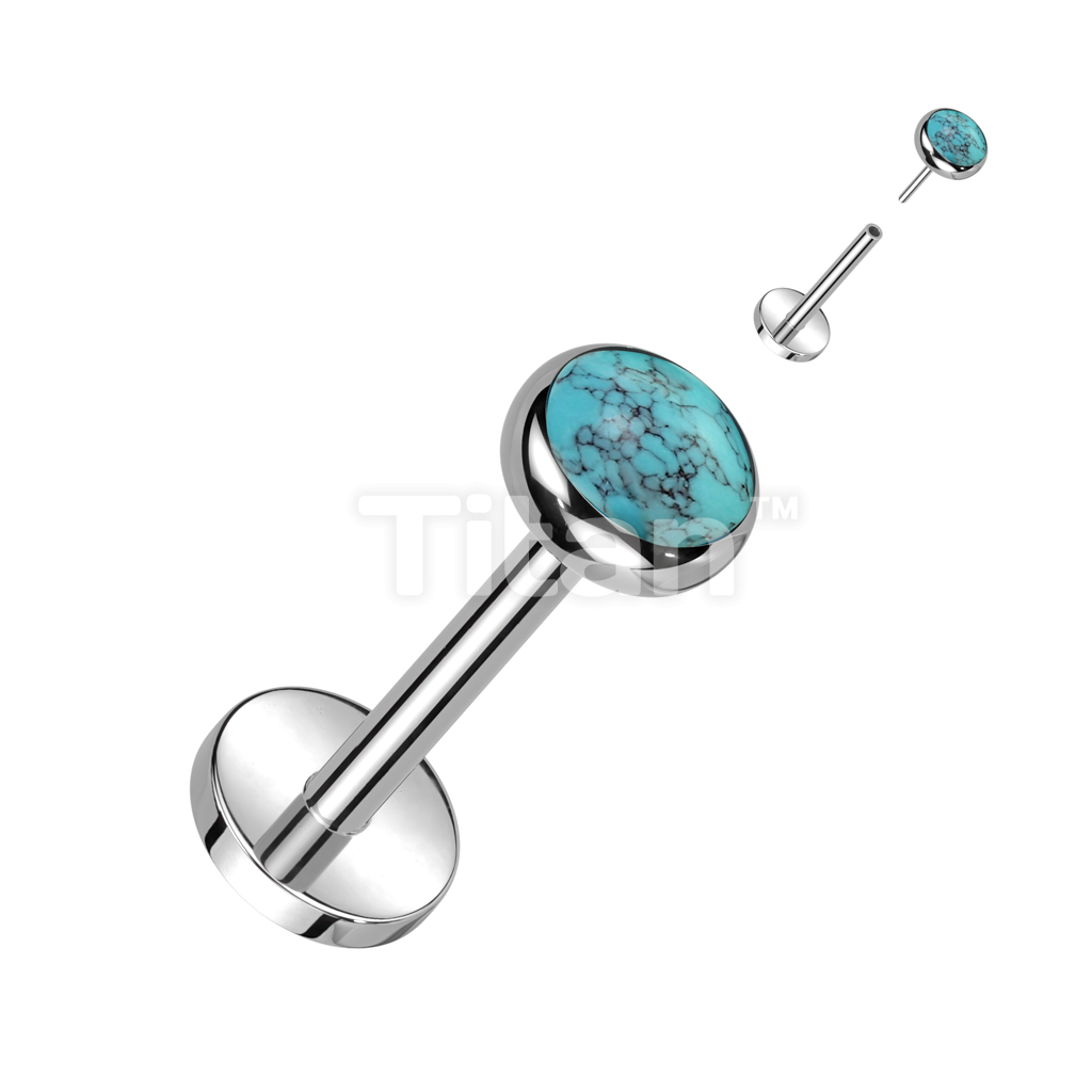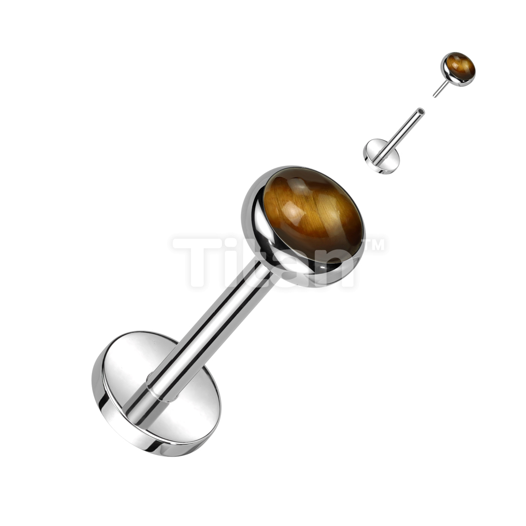 Implant Grade Titanium Threadless Push In Labret With Bezel Set Natural Stone Top