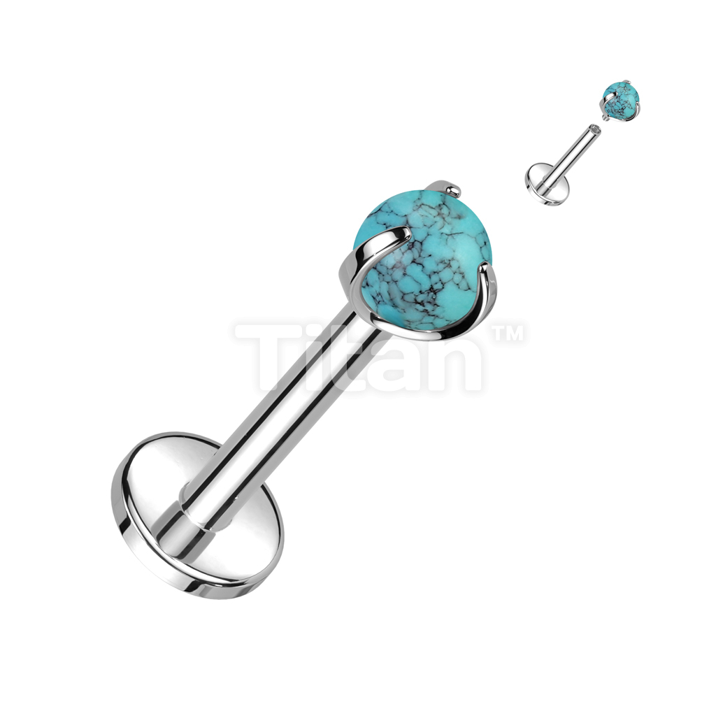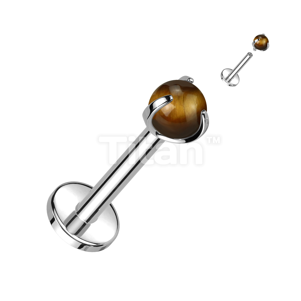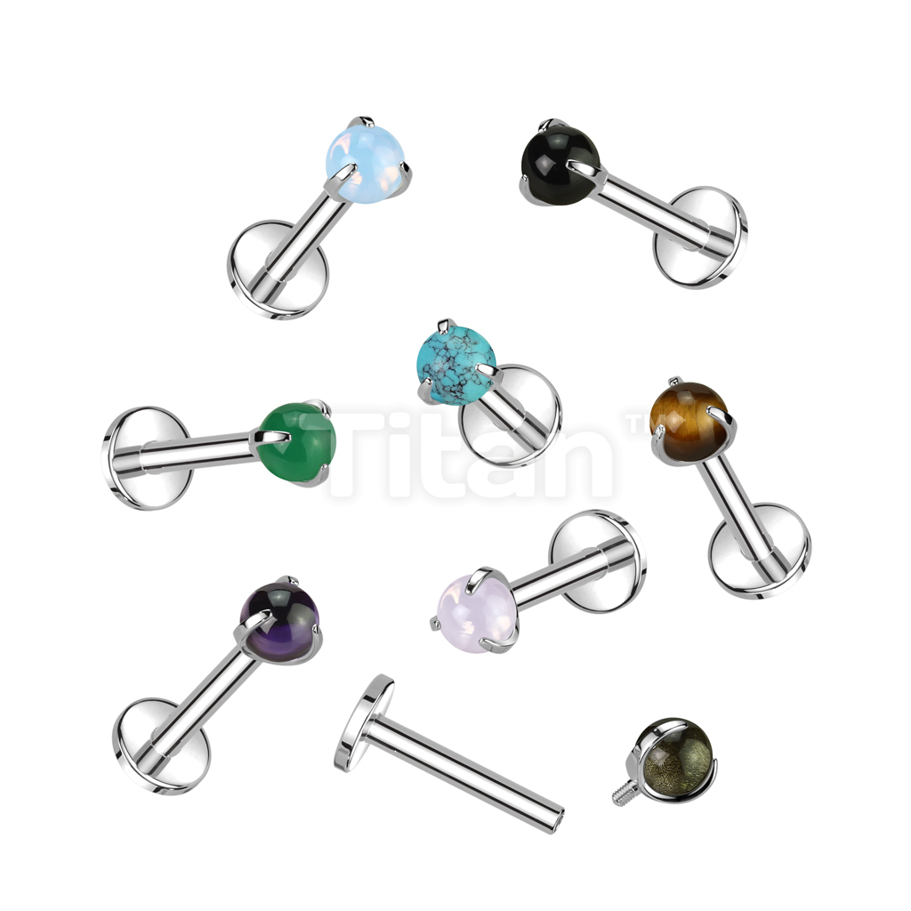 Implant Grade Titanium Internally Threaded Labret With Claw Set Natural Stone Top