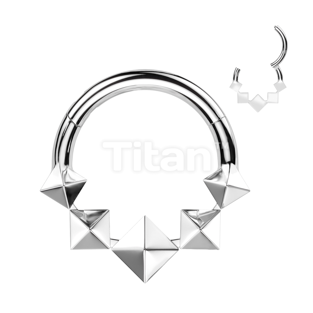 Implant Grade Titanium Hinged Segment Hoop Ring With 5 Front Facing 3D Diamonds