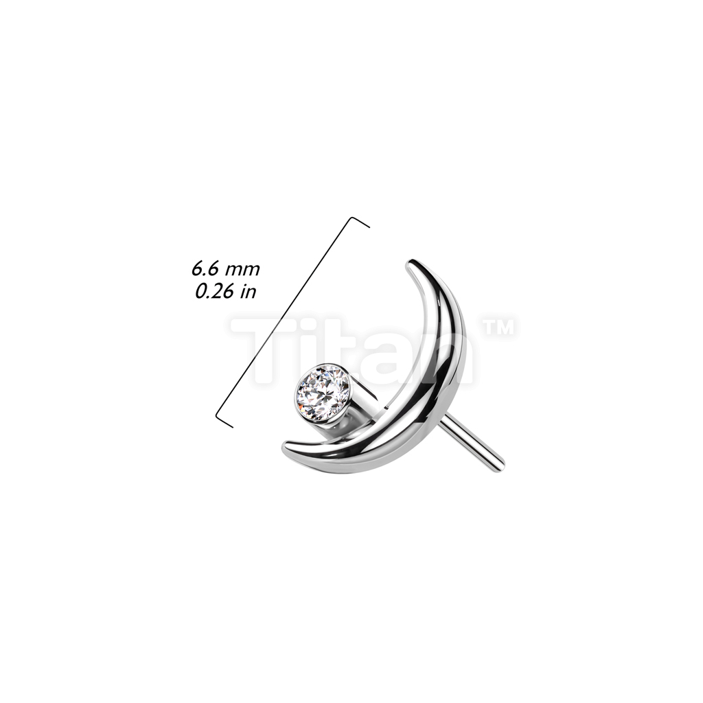 Implant Grade Titanium Threadless Push In Crescent Moon Top With Bezel Set CZ
